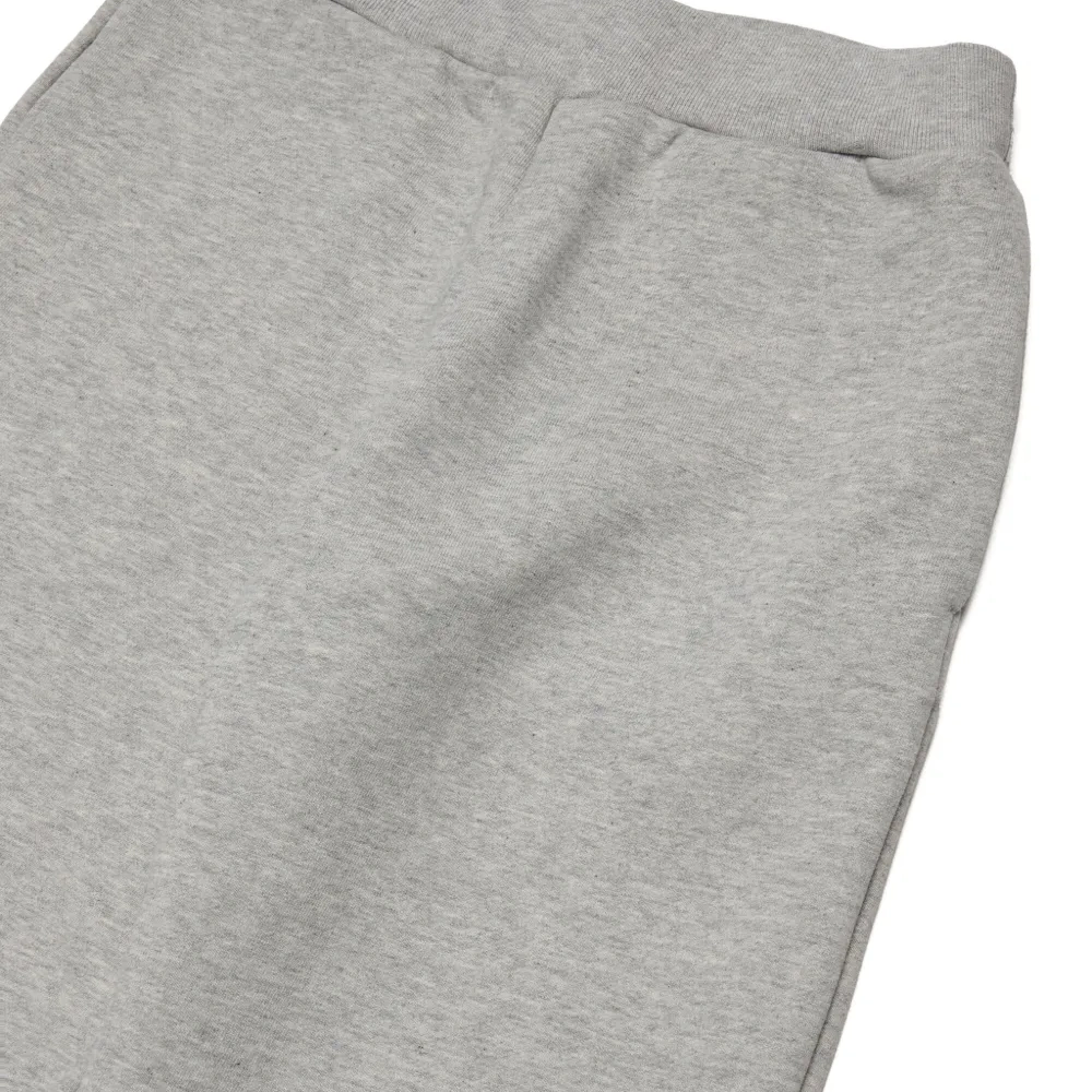 светло-серый цвет, логотип в виде надписи, эластичный пояс, прорезные карманы, эластичные манжеты на щиколотках, флисовая текстура