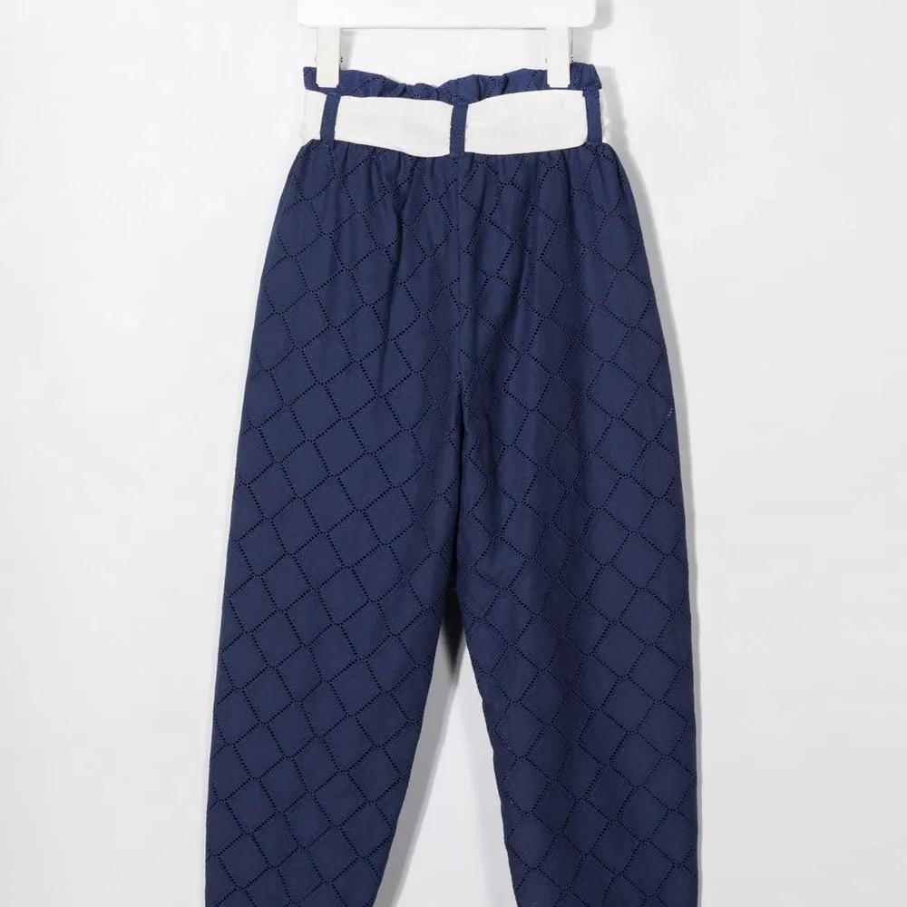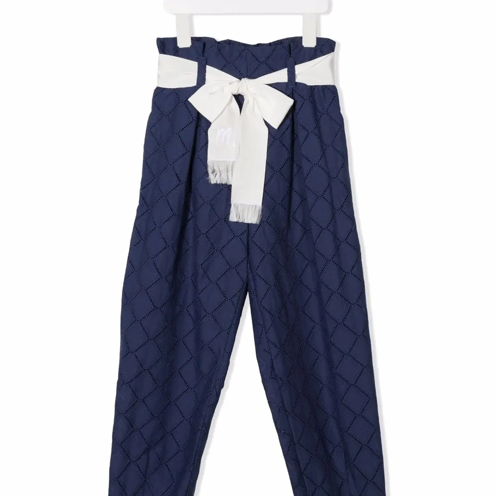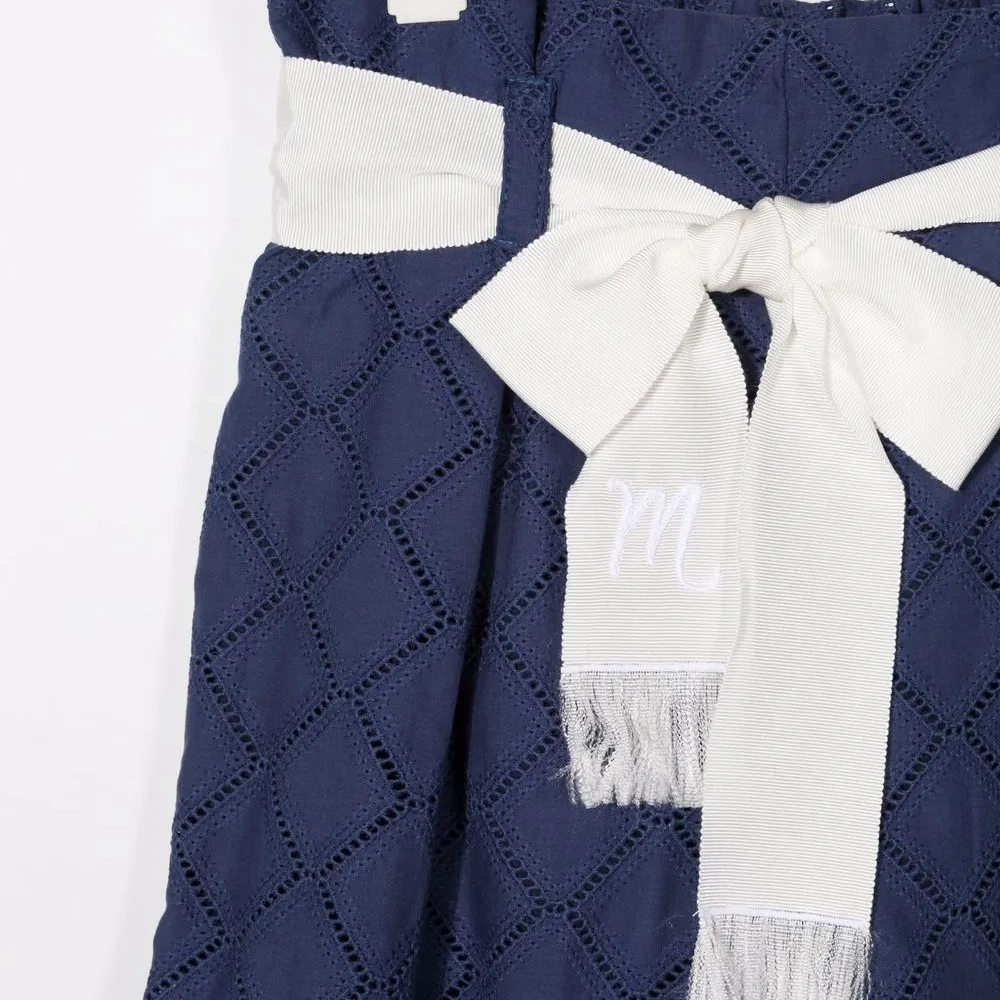 Завышенная талия, ромбовый узор, бант, петли для ремня и потайная застежка спереди.