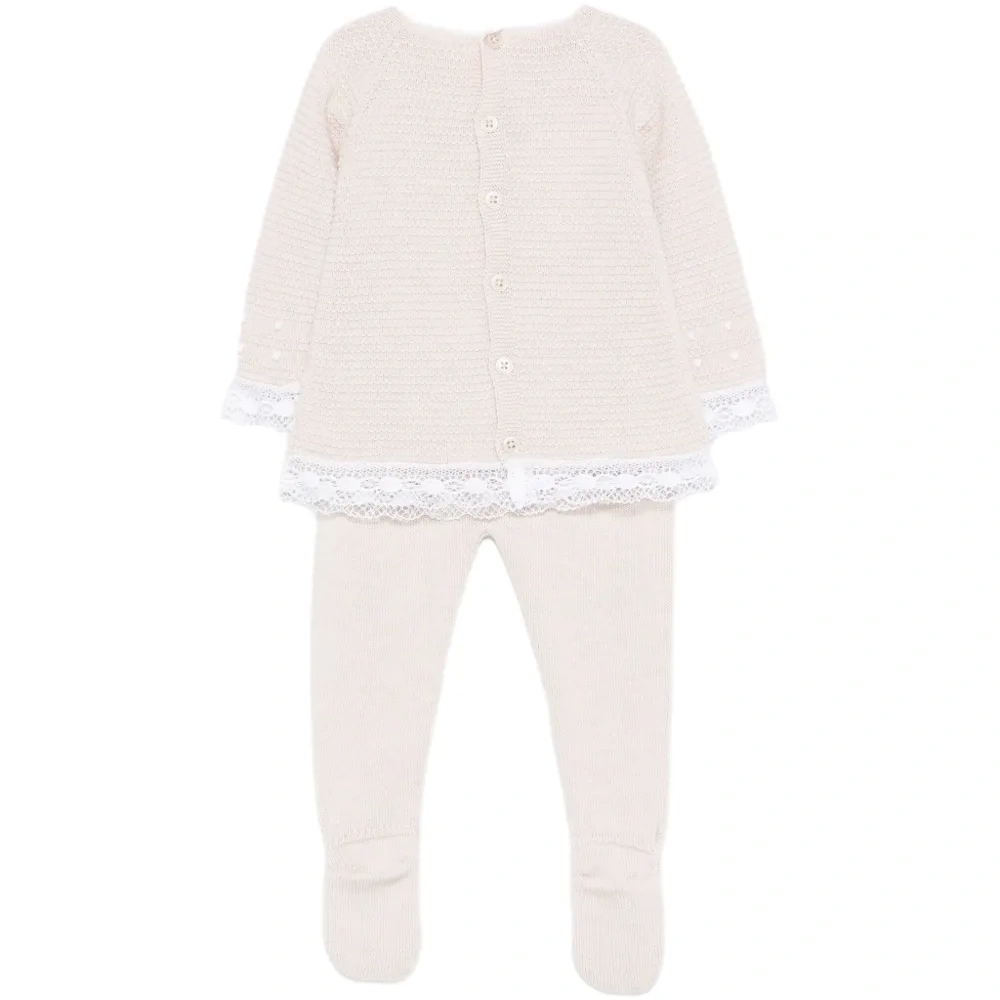 бежевые брючки с кружевной отделкой и бантиком, свитер на пуговицах. Ваша покупка будет доставлена в подарочной коробке.