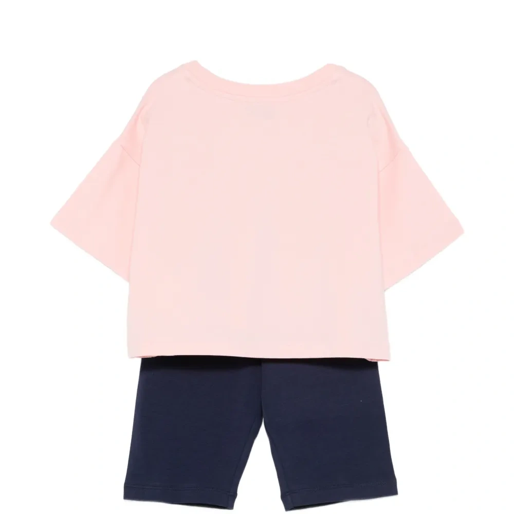 розовая и темно-синяя футболка с круглым вырезом, короткими рукавами и графическим принтом