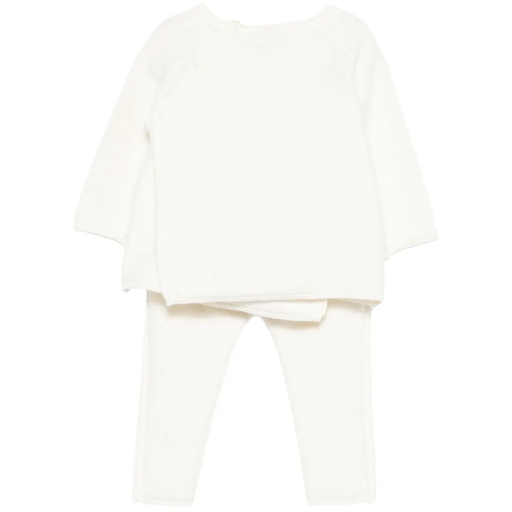 белый комплект из двух предметов с цветочными деталями, круглым вырезом и длинными рукавами