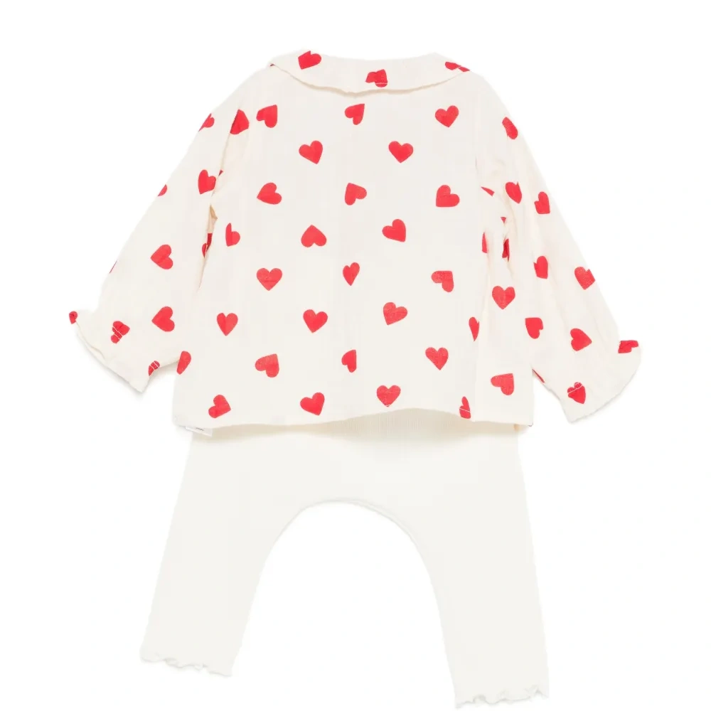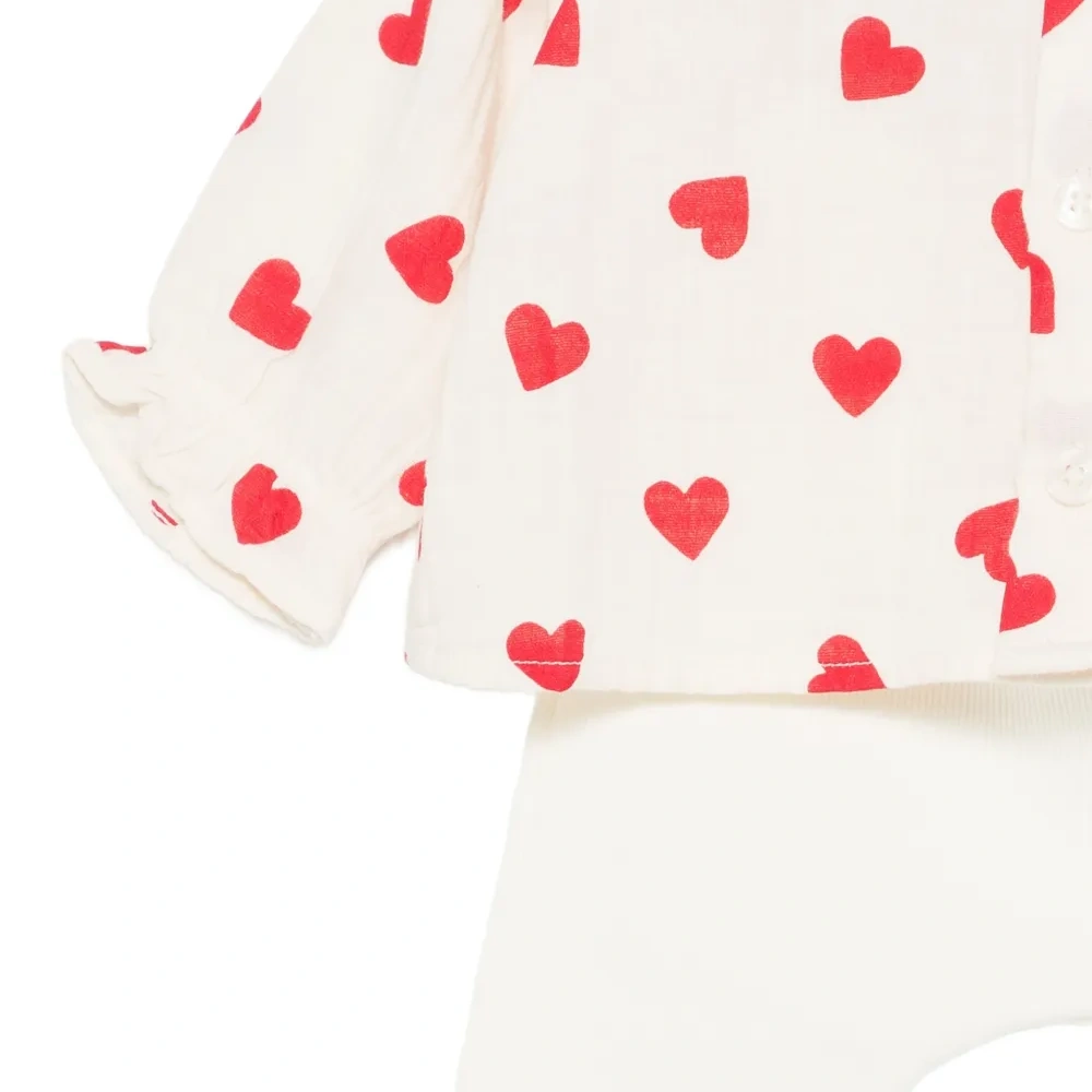 белый комплект из двух предметов с принтом в виде сердечек и застежкой на пуговицы