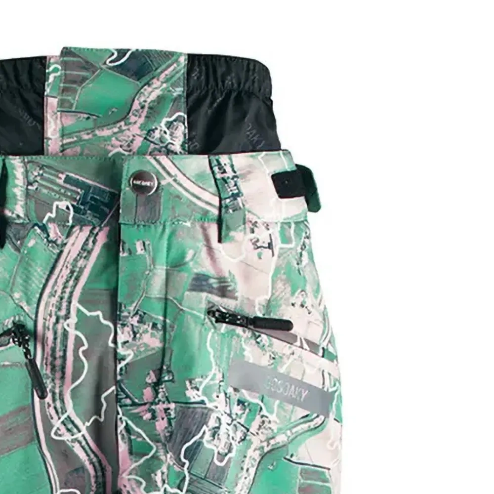 зеленый с принтом, черный пояс, застежка-молния, накладные карманы с клапанами, разрез на подоле