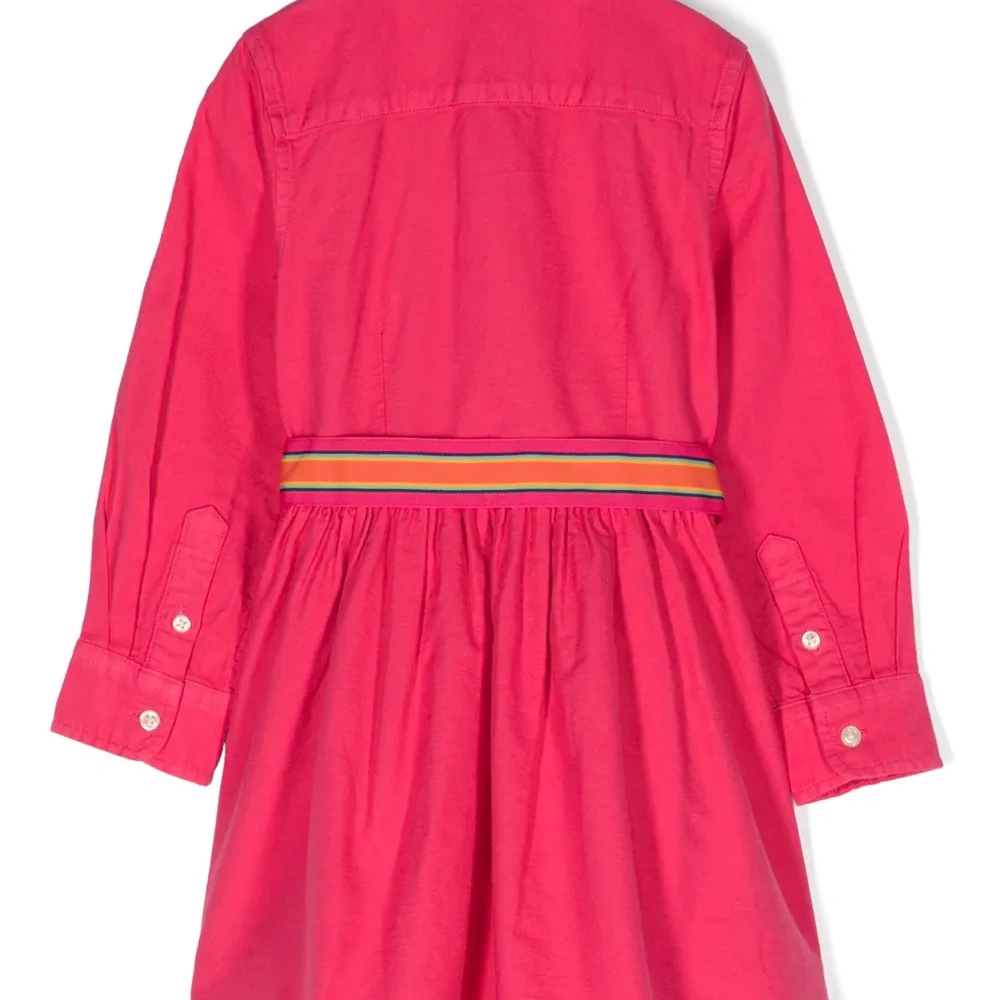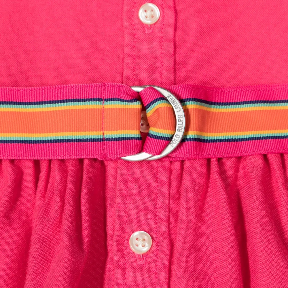 Темно-розовый, хлопок, знаковый логотип Polo Pony, воротник Питер Пэн, застежка на пуговицах спереди, длинные рукава, манжеты на пуговицах, ремень на талии и расклешенный подол.