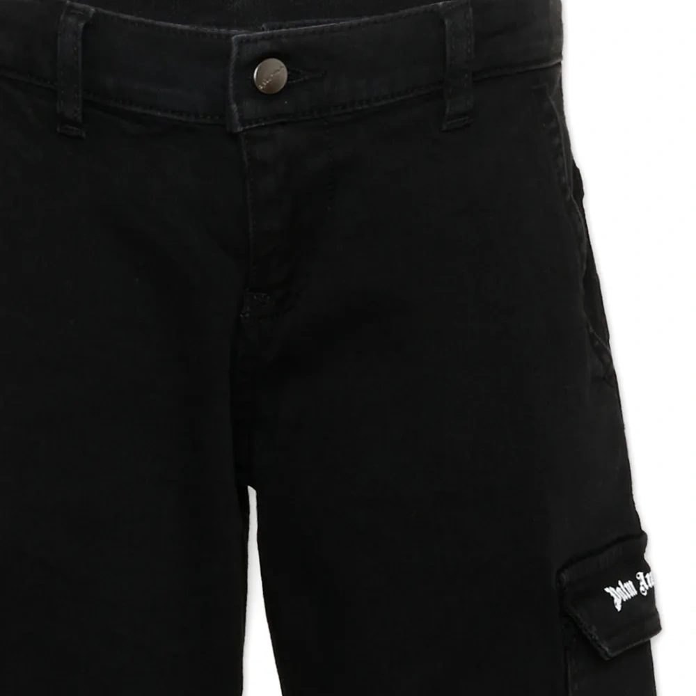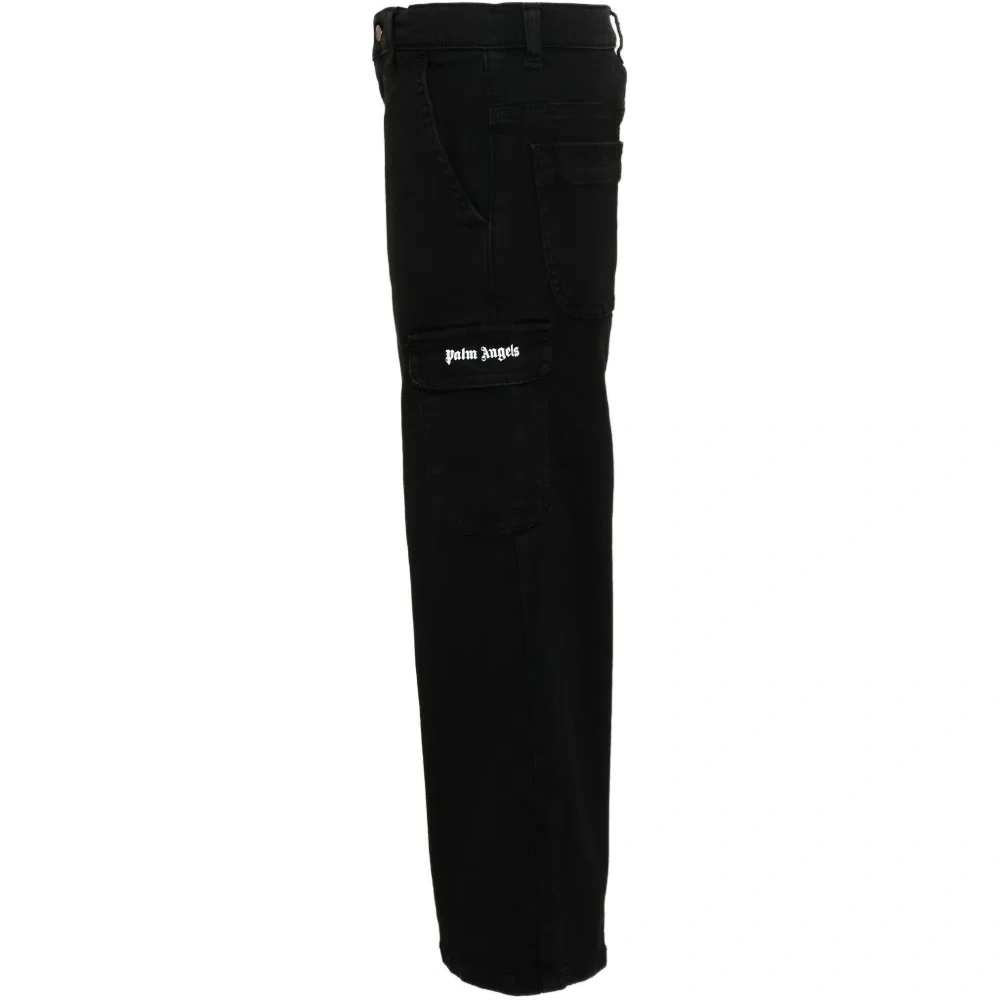 чёрные брюки с накладными карманами, логотипом и застёжкой на пуговицы