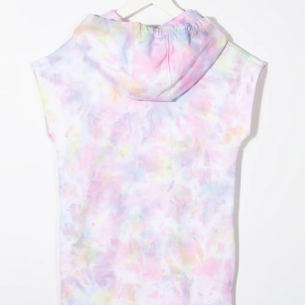 Принт тай-дай, логотип спереди, классический капюшон, короткие рукава и прямой подол. Цвет: разноцветный.