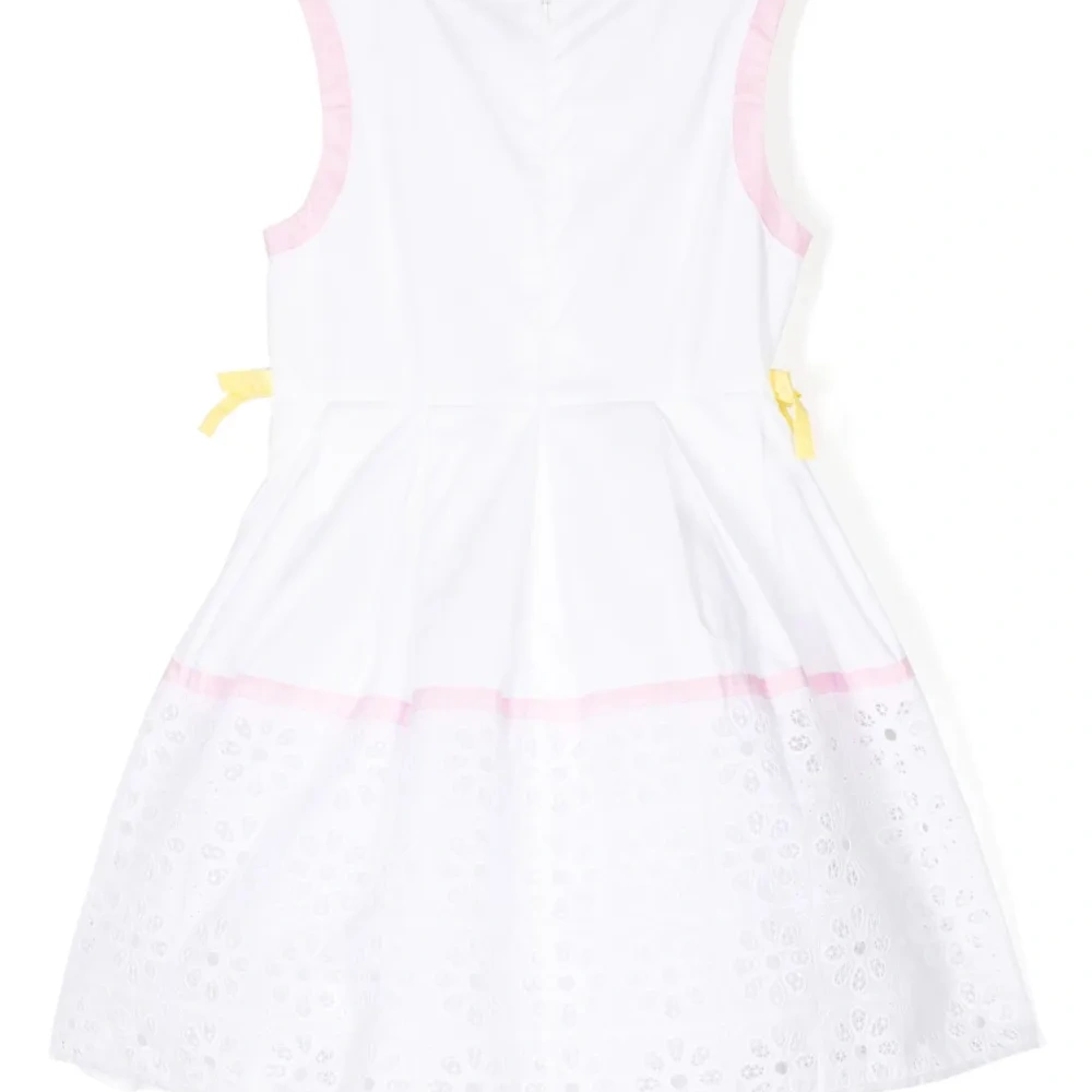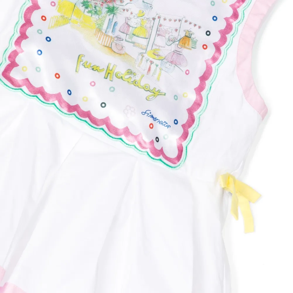 Платье с графичным принтом от Simonetta. Круглый вырез, модель без рукавов, завязки по бокам и декоративная перфорация. Цвет: белый.