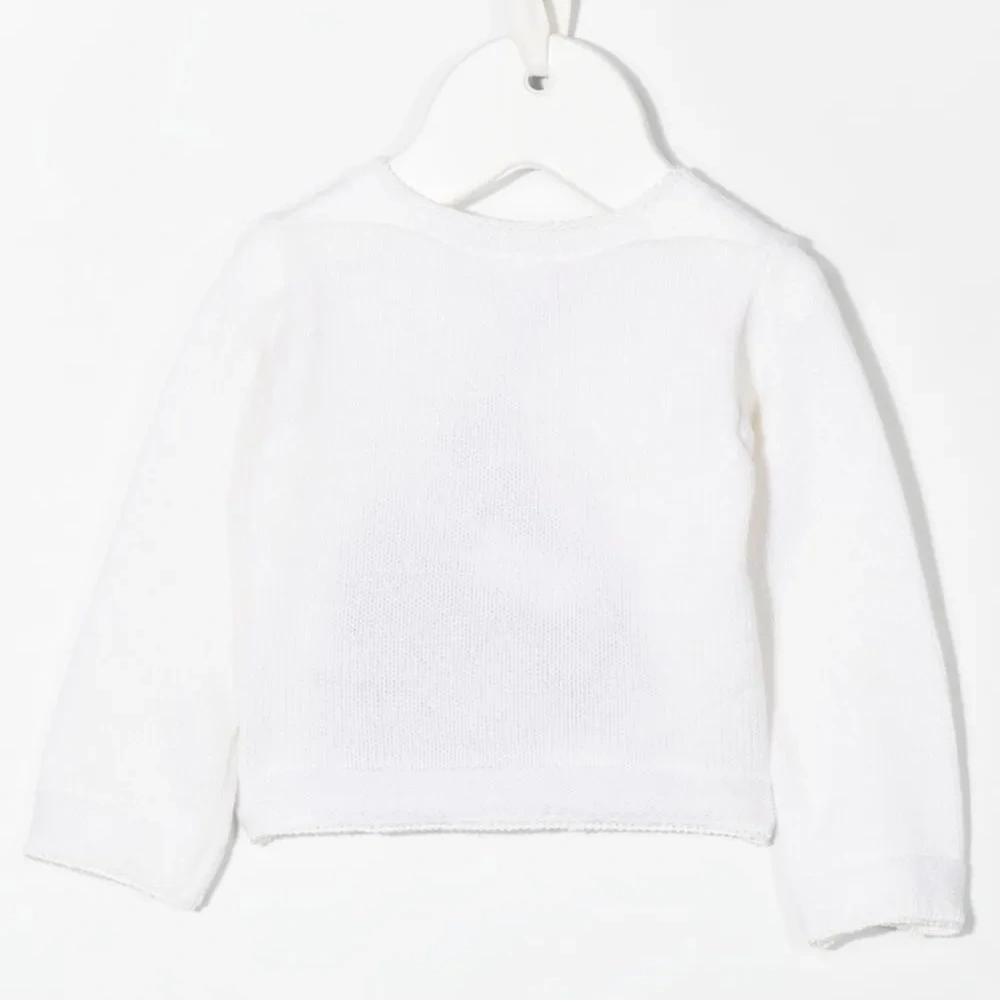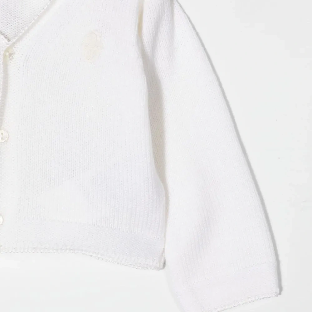 Белый, кашемир, трикотажный материал, застежка на пуговицах спереди и V-образный вырез.