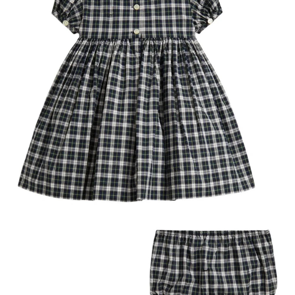 белый/синий/зелёный — клетка в шотландскую клетку, отделка со сборками, воротник Питер Пэн, короткие рукава, вышитый мотив