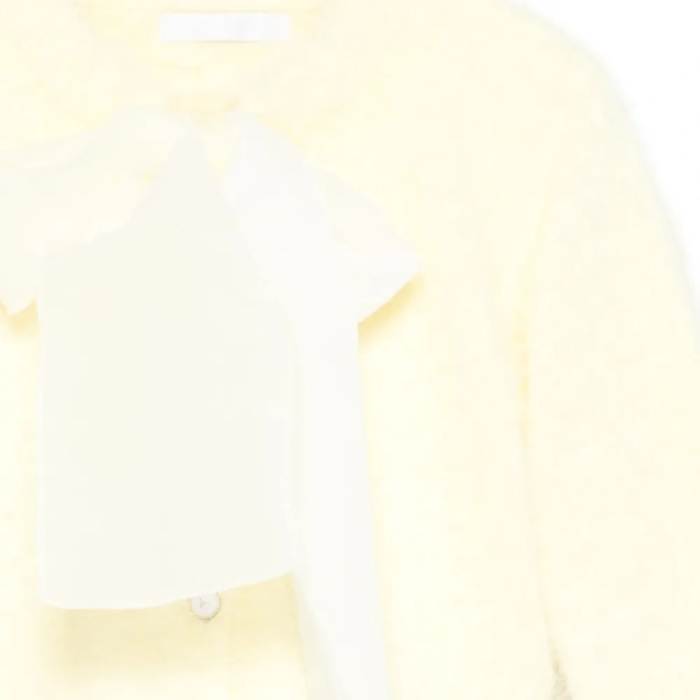 бледно-жёлтая рубашка на пуговицах с длинными рукавами и съёмным бантом