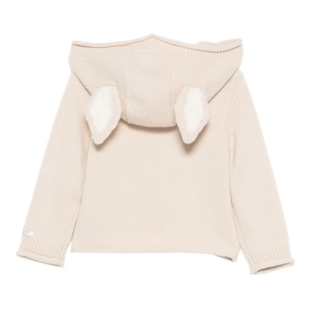 бежевый капюшон застёжка на пуговицы спереди длинные рукава вязаные манжеты декор в виде ушек