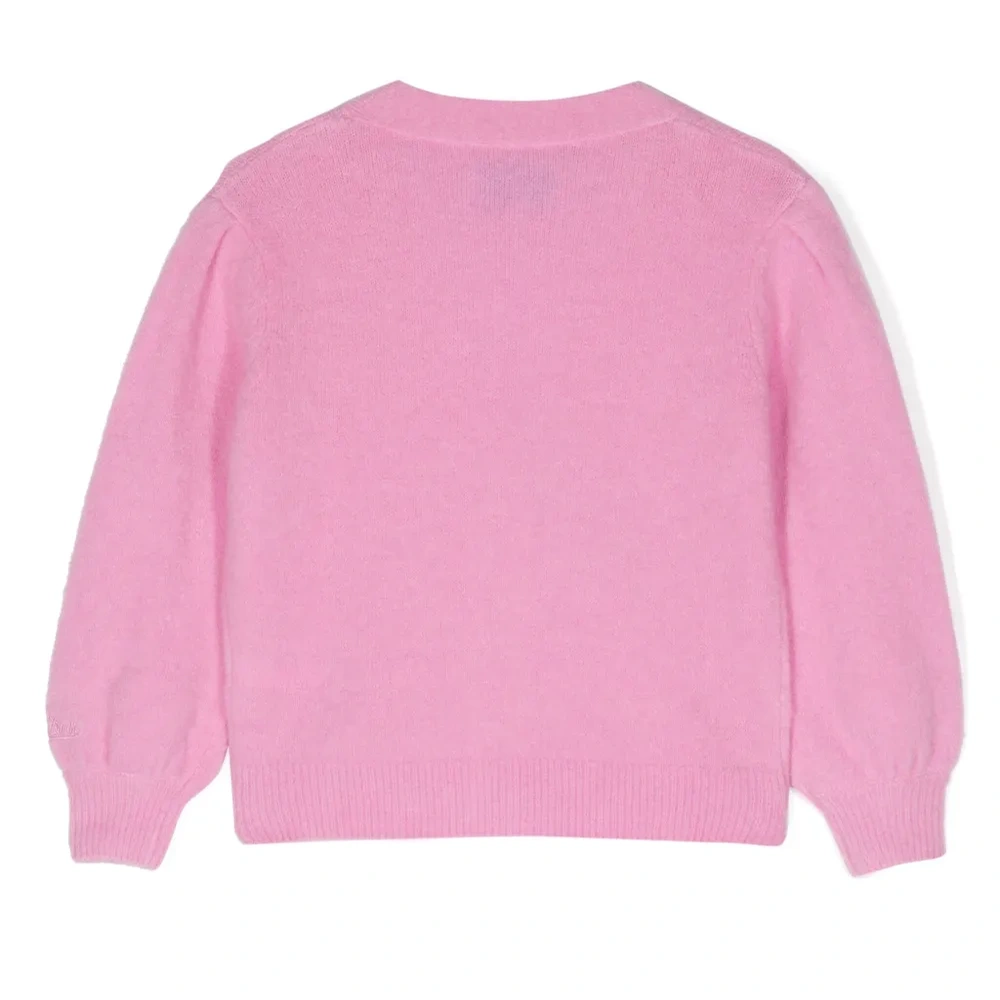 Розовый, разноцветный, смесовая шерсть альпаки, трикотаж в рубчик, вышивка, объемные рукава и прямой подол.