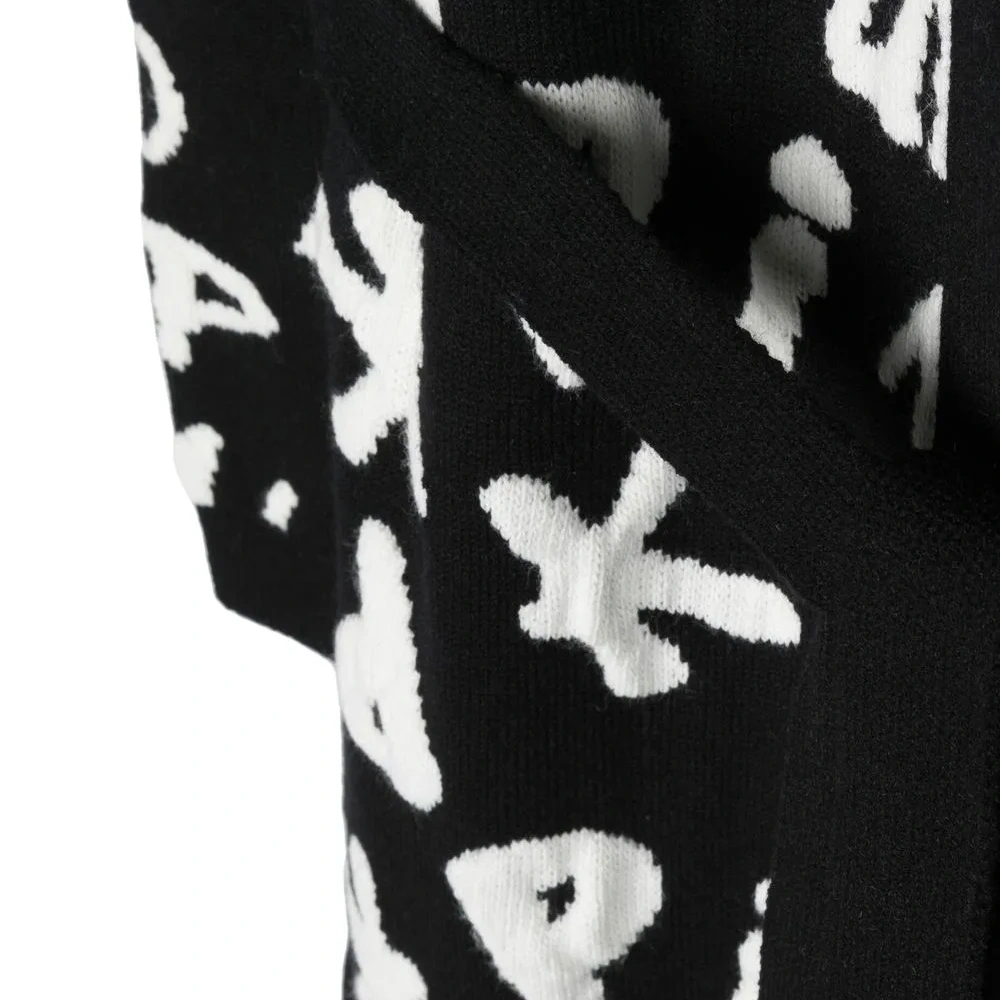 Черный/белый, логотип в технике интарсия, кулиска на талии, длинные рукава и длинная модель.