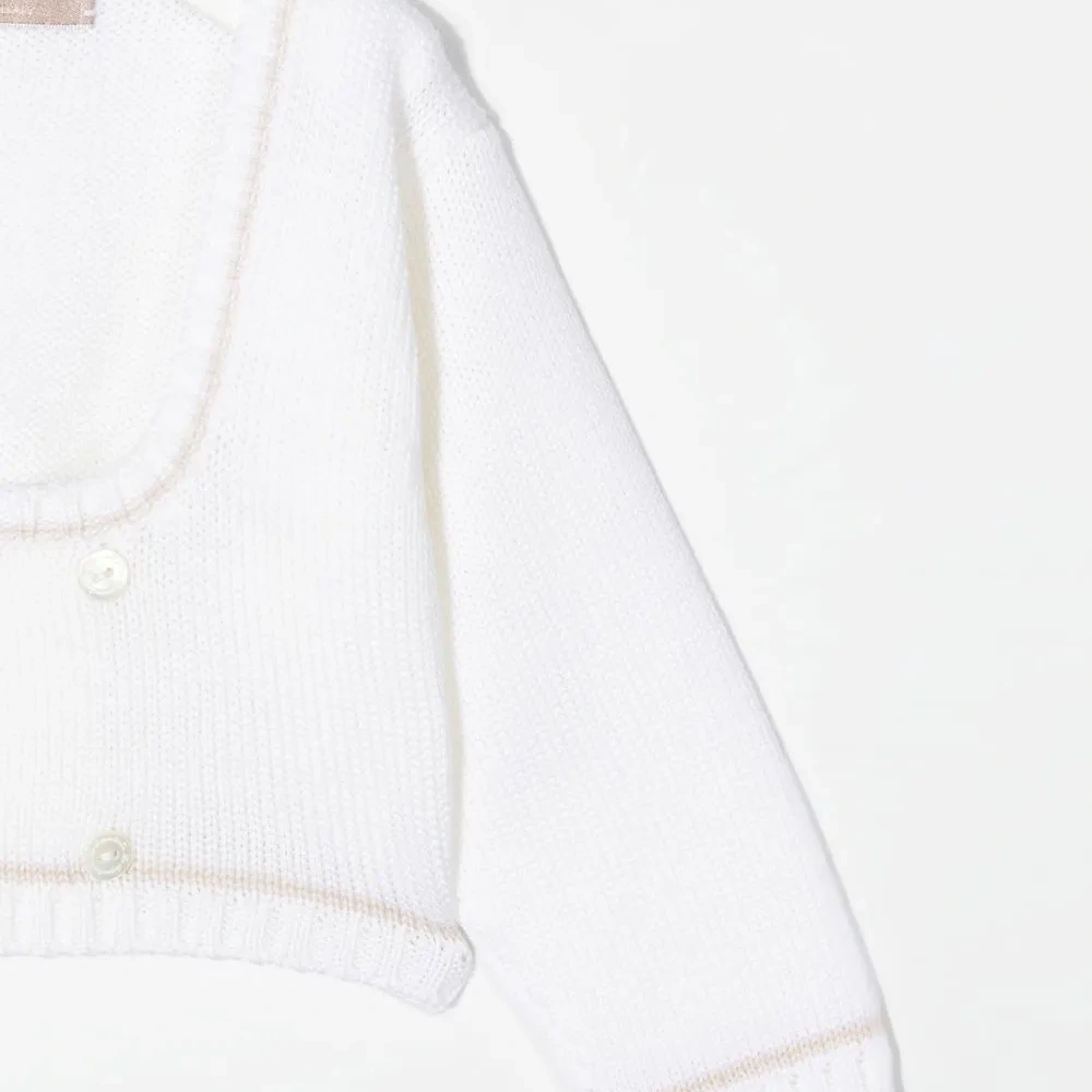 Расцветка Cloud White, шерсть, U-образный вырез, двубортная застежка на кнопки и длинные рукава.