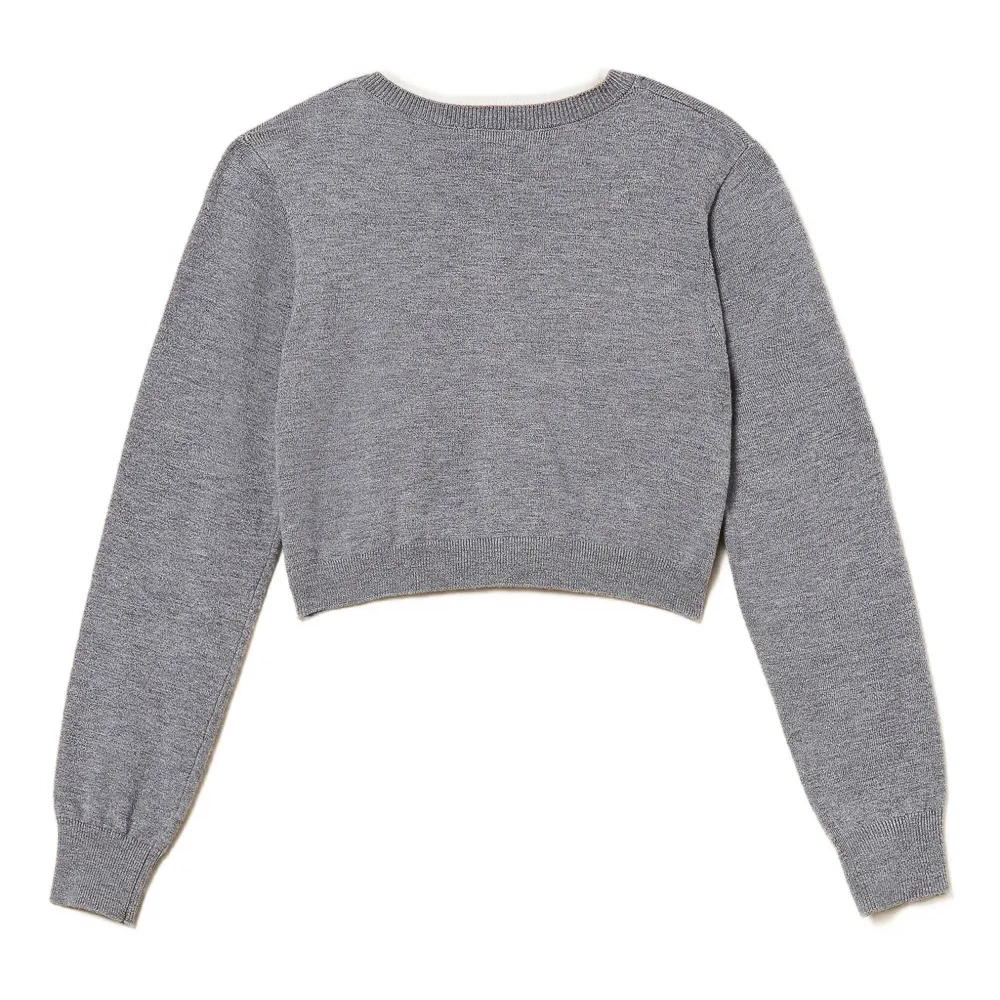 средне-серый меланж, круглый вырез, застёжка на пуговицы, длинные рукава, ребристые края