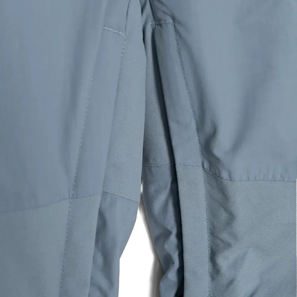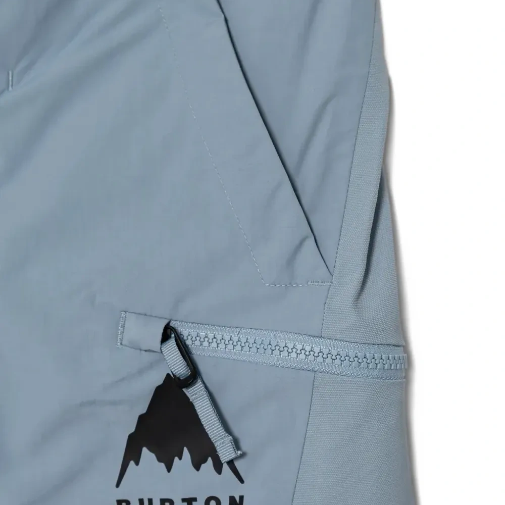пыльно-голубой цвет, карман на молнии, боковая кулиска, шлевки для ремня, накладной карман с клапаном, застёжка на пуговицу