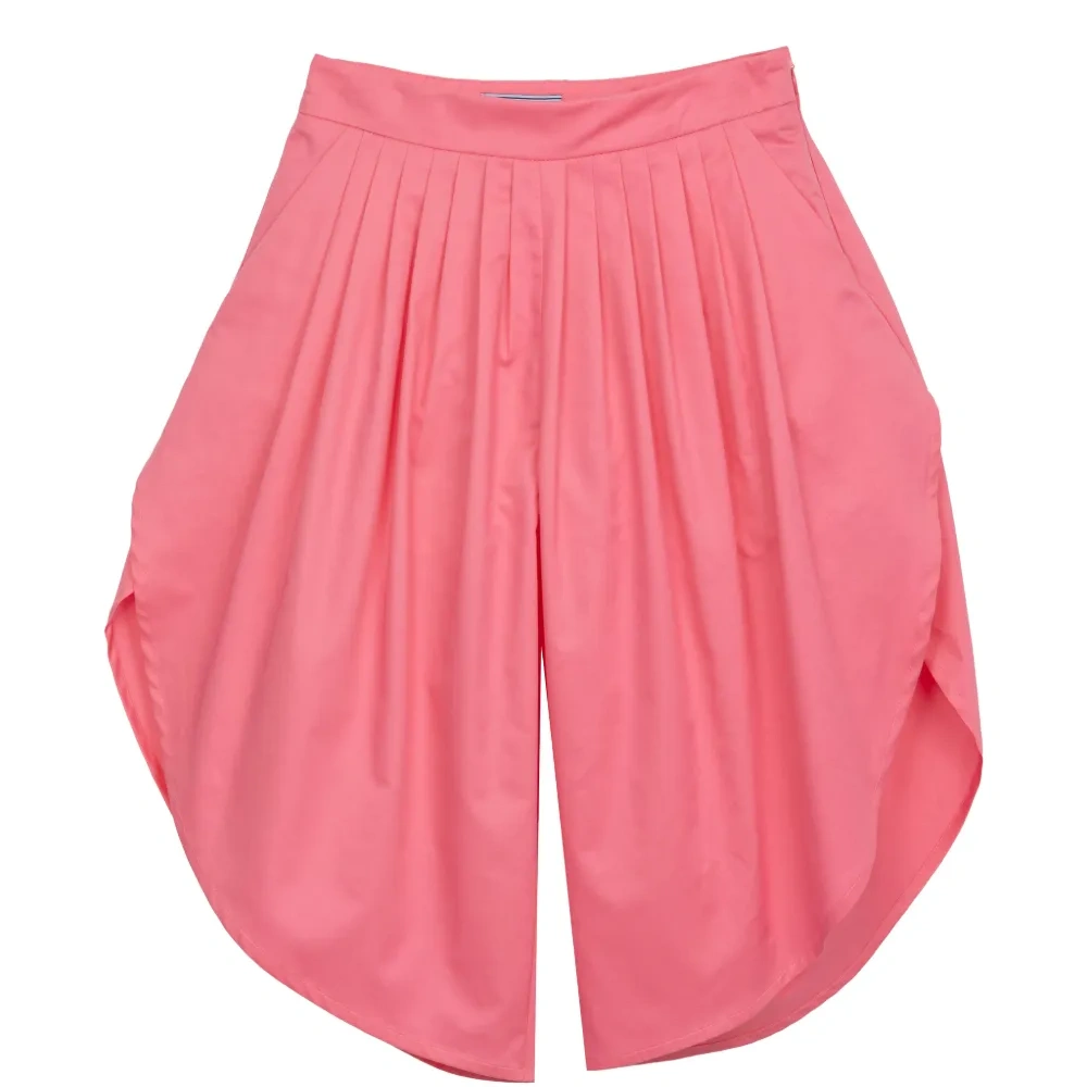 фуксия, широкие брюки со складками, высокая посадка, боковые карманы, широкие манжеты