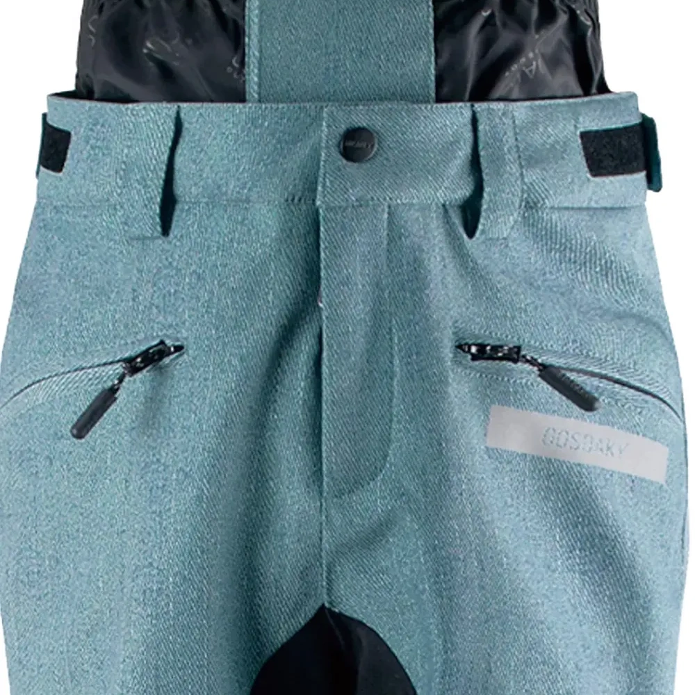 джинсово-синий цвет, карманы на молнии, шлевки для ремня, застежка-молния, задняя вставка, боковая застежка-молния