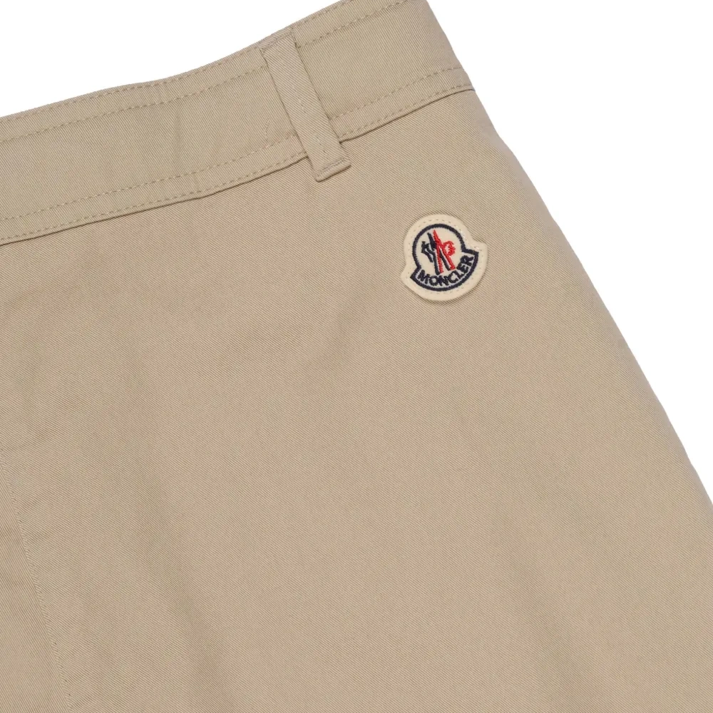 светло-бежевый цвет, нашивка с логотипом, шлевки для ремня, застежка на пуговицу, подвороты на манжетах
