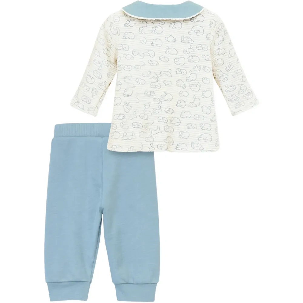 Костюм с брюками и принтом, с воротником Питера Пэна