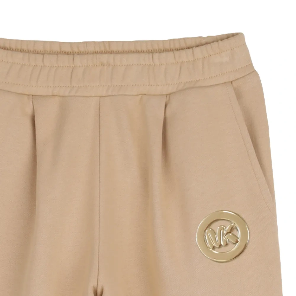 бежевый цвет, нашивка с логотипом, эластичный пояс, боковые диагональные карманы, защипы спереди