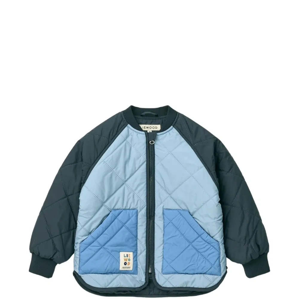синий стеганый дизайн с логотипом и эластичными манжетами