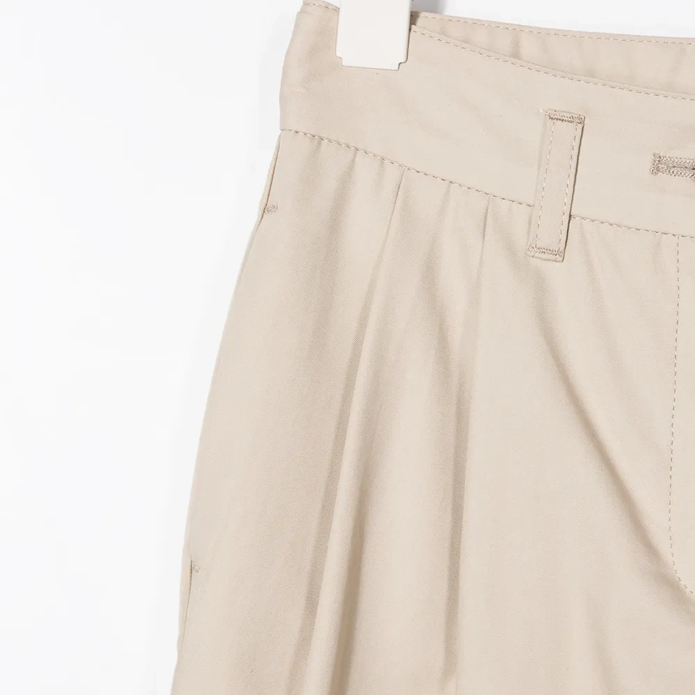 Брюки с карманами и складками от Dolce & Gabbana Kids. Завышенная посадка, прямые брючины, подвернутый низ, талия с плиссировкой, прорезные карманы по бокам, накладные карманы, задние карманы с листочкой на пуговицах, петли для ремня и застежка спереди.