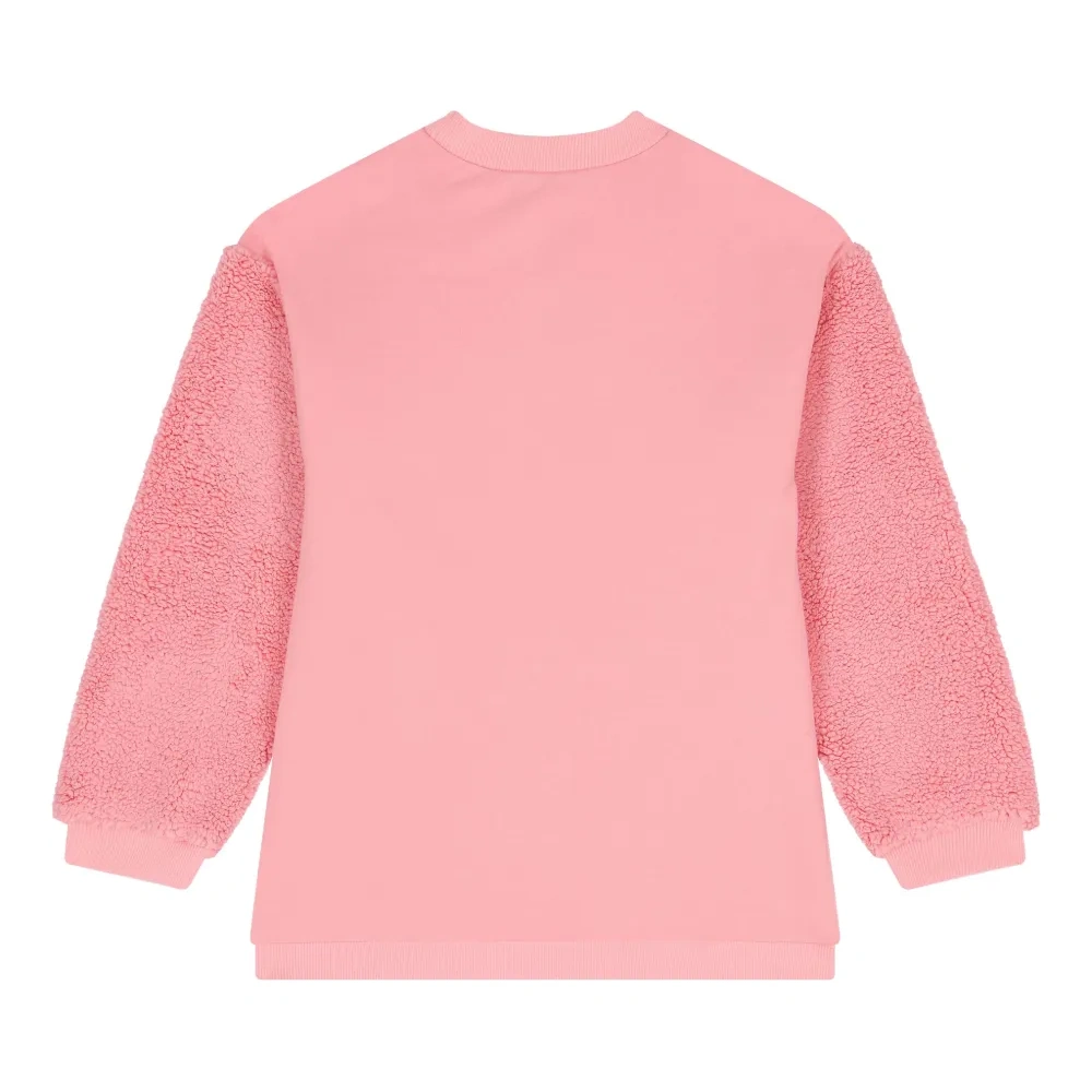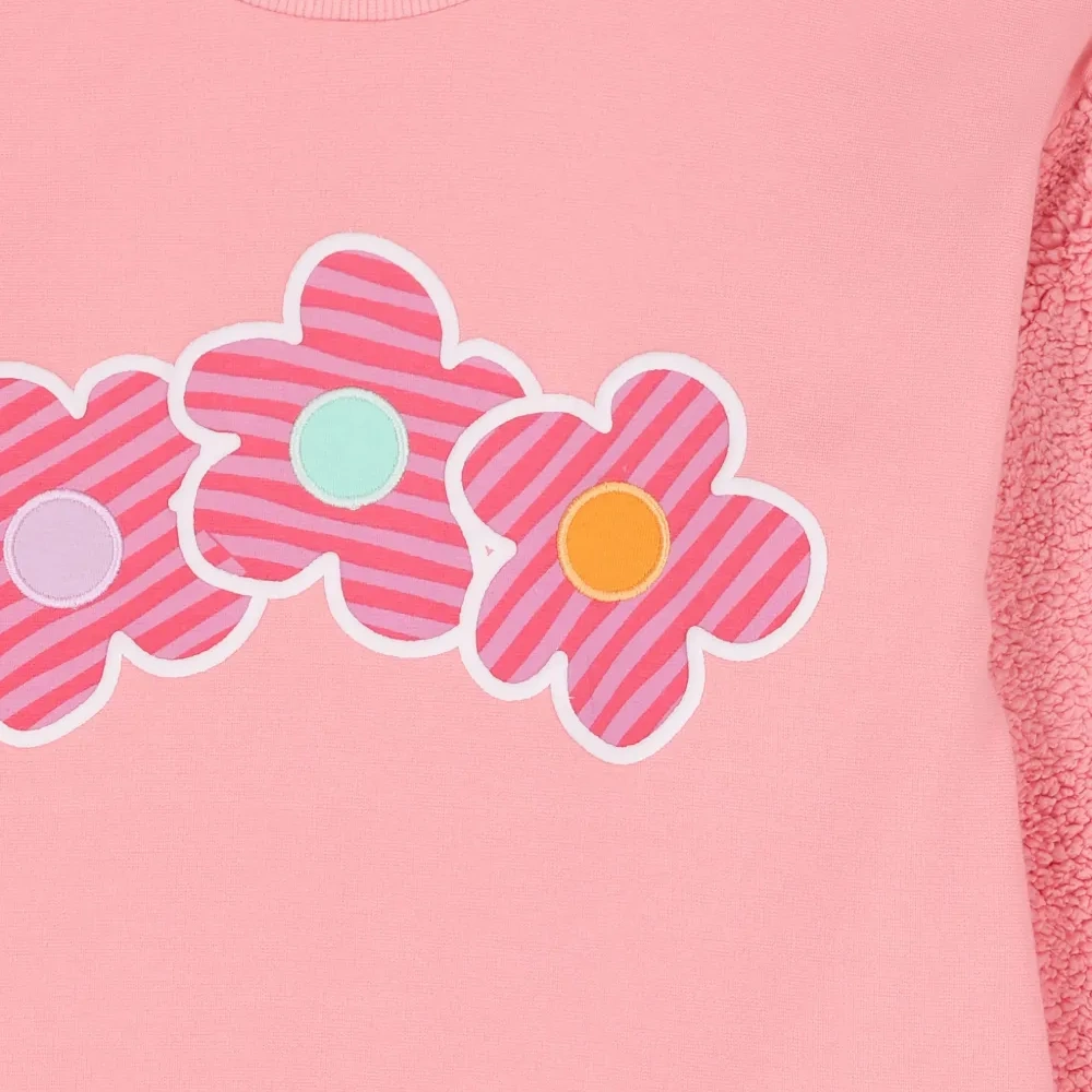 розовый свитшот с цветочным принтом, флисовыми рукавами, круглым вырезом, длинными рукавами и эластичным поясом