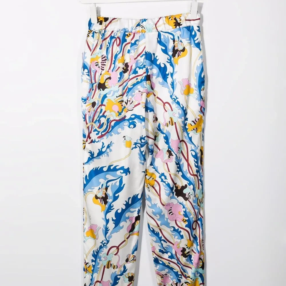Абстрактный принт, эластичный пояс, свободный крой, низкий шаговый шов и эластичные манжеты. Цвет: разноцветный.