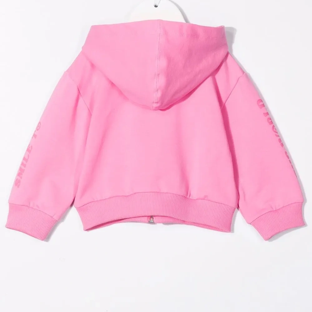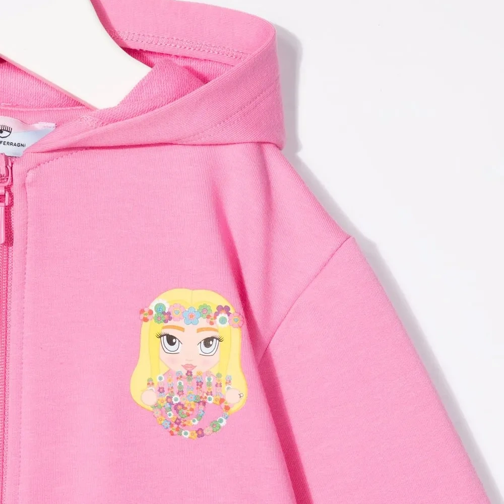 Мультипликационный принт, классический капюшон, застежка на молнии спереди, длинные рукава и прямой подол. Цвет: розовый.