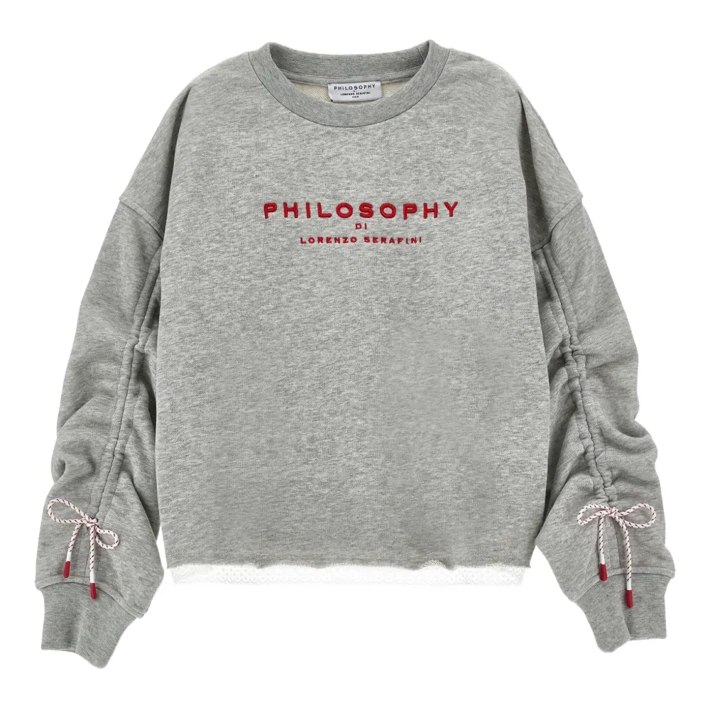 Drawstring-sleeves sweatshirt