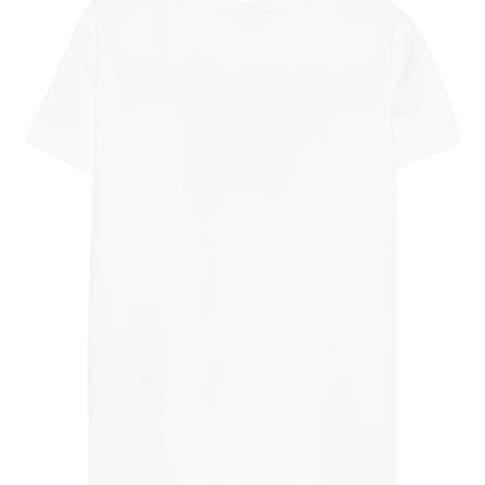 белая футболка с круглым вырезом, короткими рукавами и логотипом