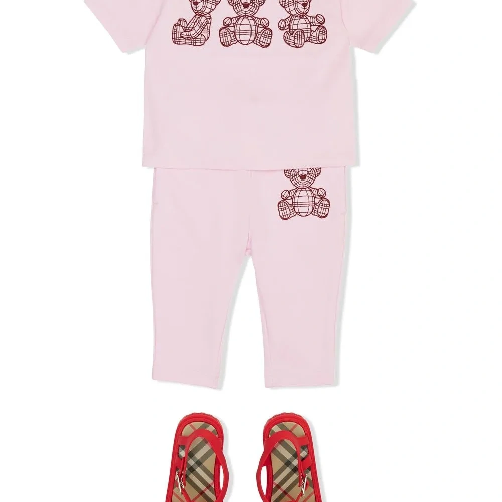 Бледно-розовый, хлопок, декор Thomas Bear, застежка на пуговицы, круглый вырез и короткие рукава.