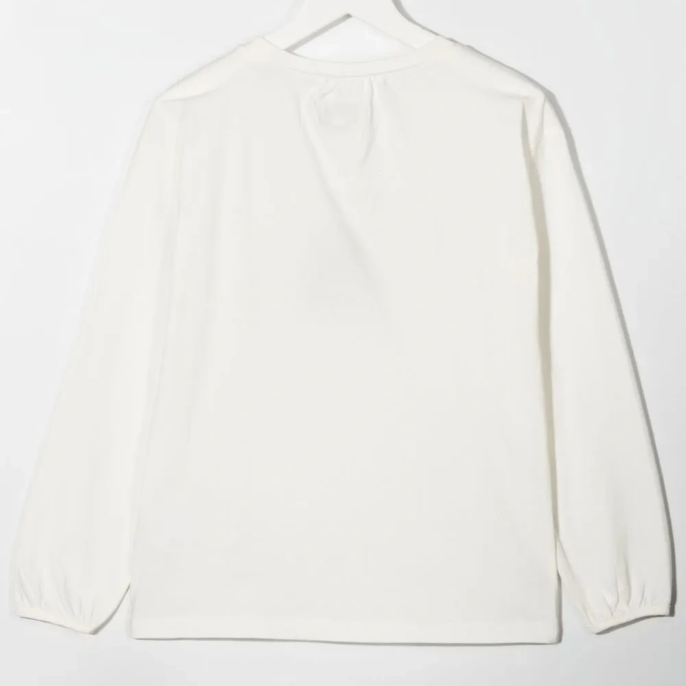 Белый, кремово-белый, органический хлопок, планка на пуговицах спереди, вышитый логотип сзади, круглый вырез, длинные рукава и прямой подол.