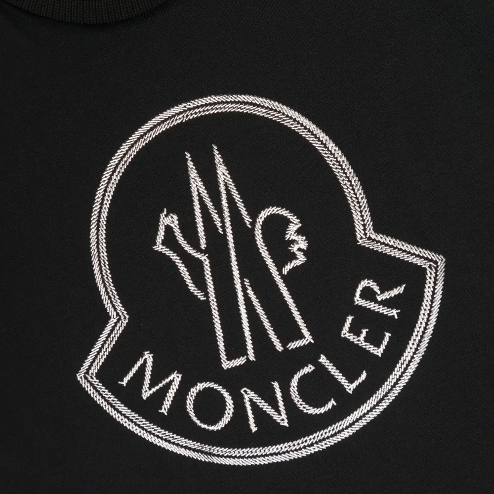 Черный, хлопок, вышитый логотип спереди, люрекс, круглый вырез, короткие рукава и прямой подол.