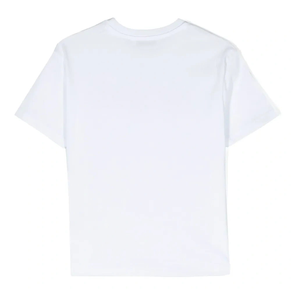 Белый/разноцветный, хлопок, логотип спереди, круглый вырез, короткие рукава и прямой подол.