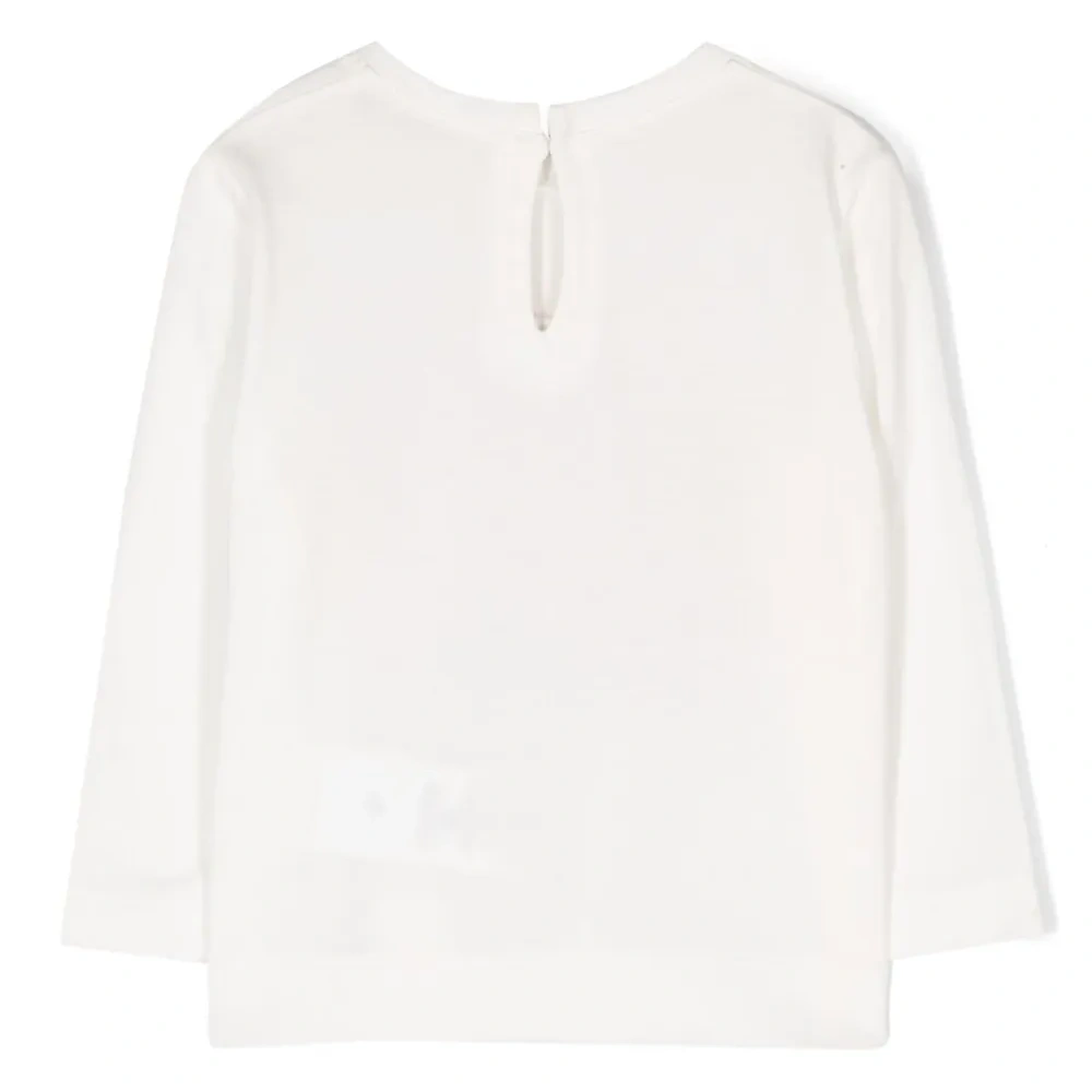 Кремовый, хлопок, графичный принт спереди, круглый вырез, длинные рукава, застежка на пуговицы сзади и прямой подол.
