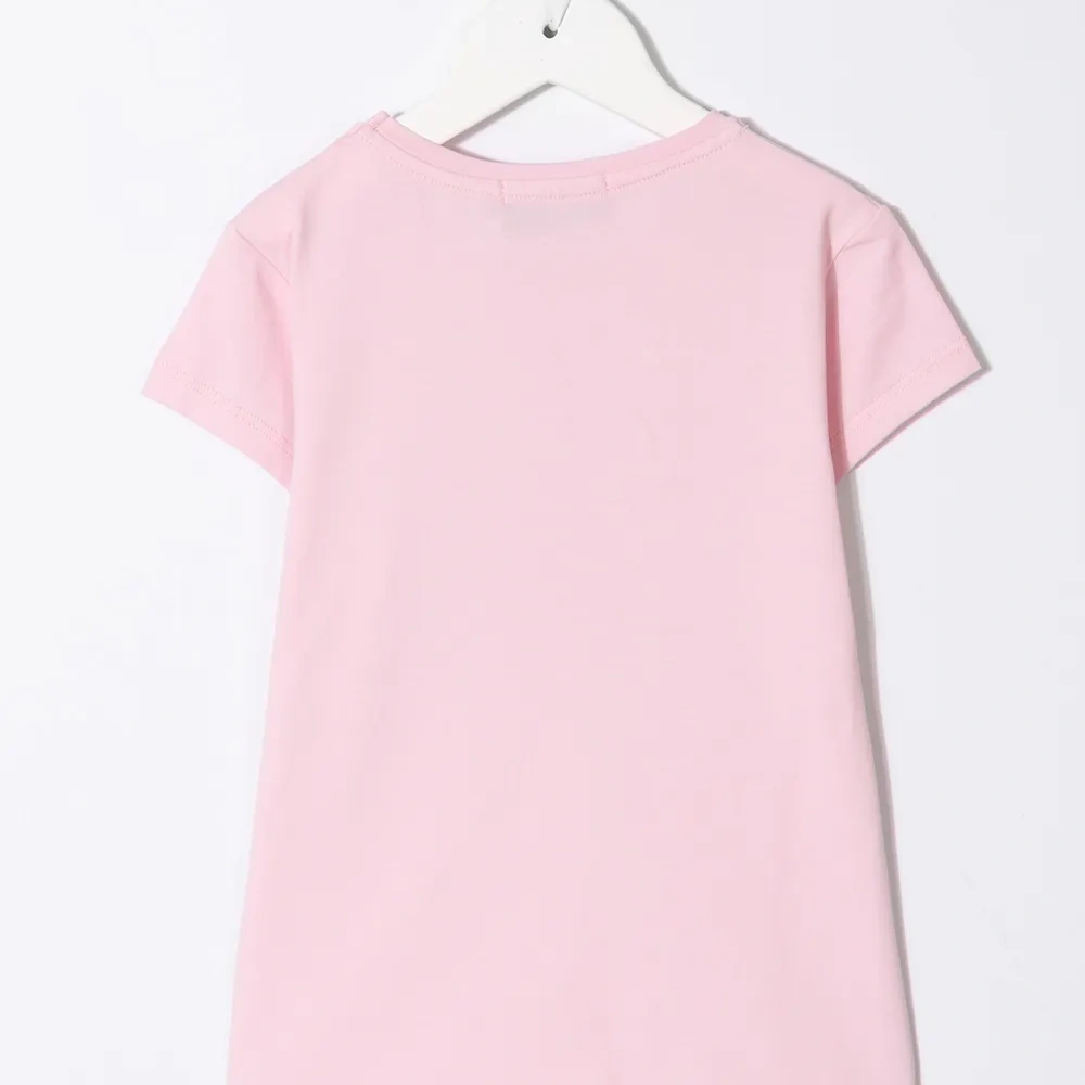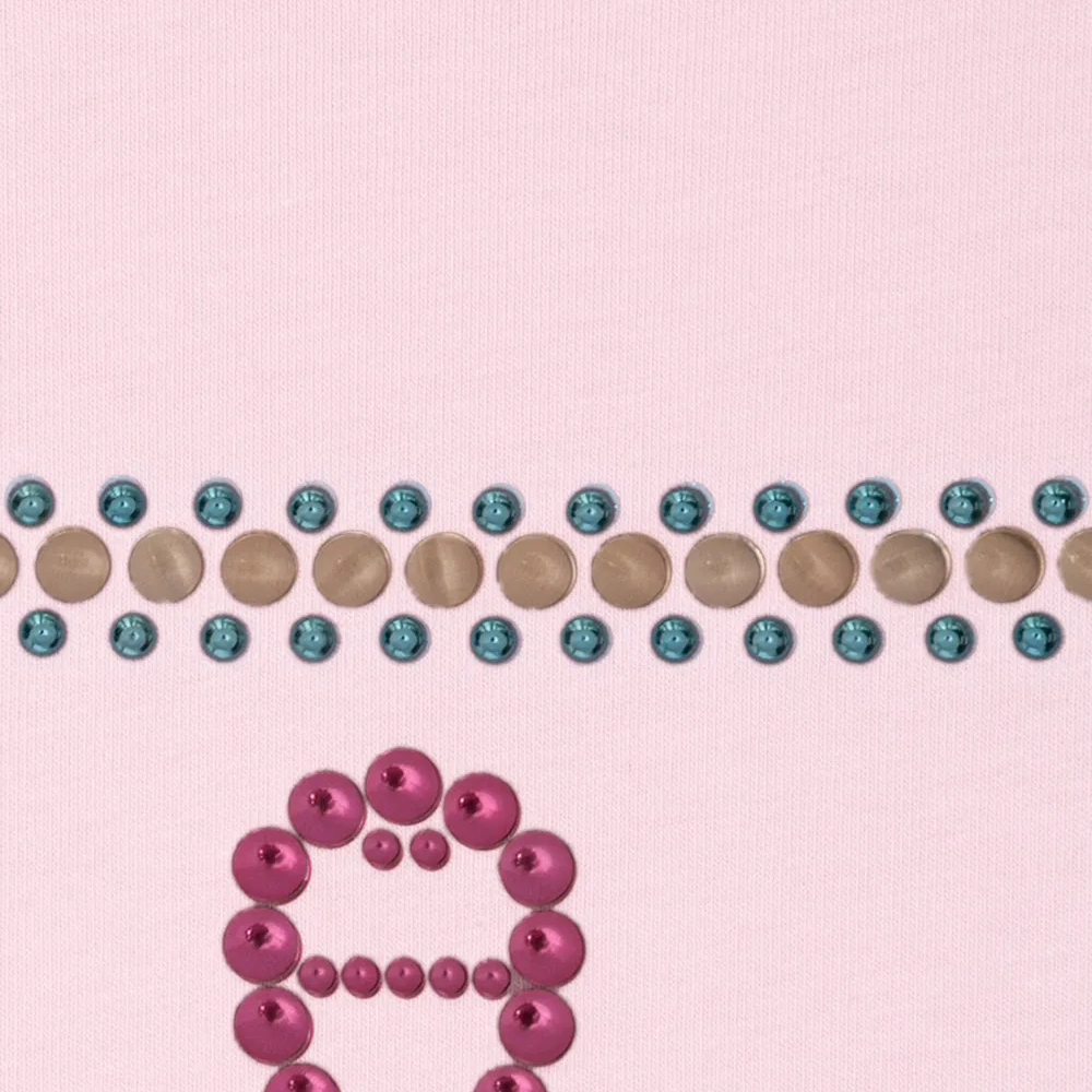 Круглый вырез, короткие рукава, украшения из горного хрусталя и прямой подол. Цвет: розовый.