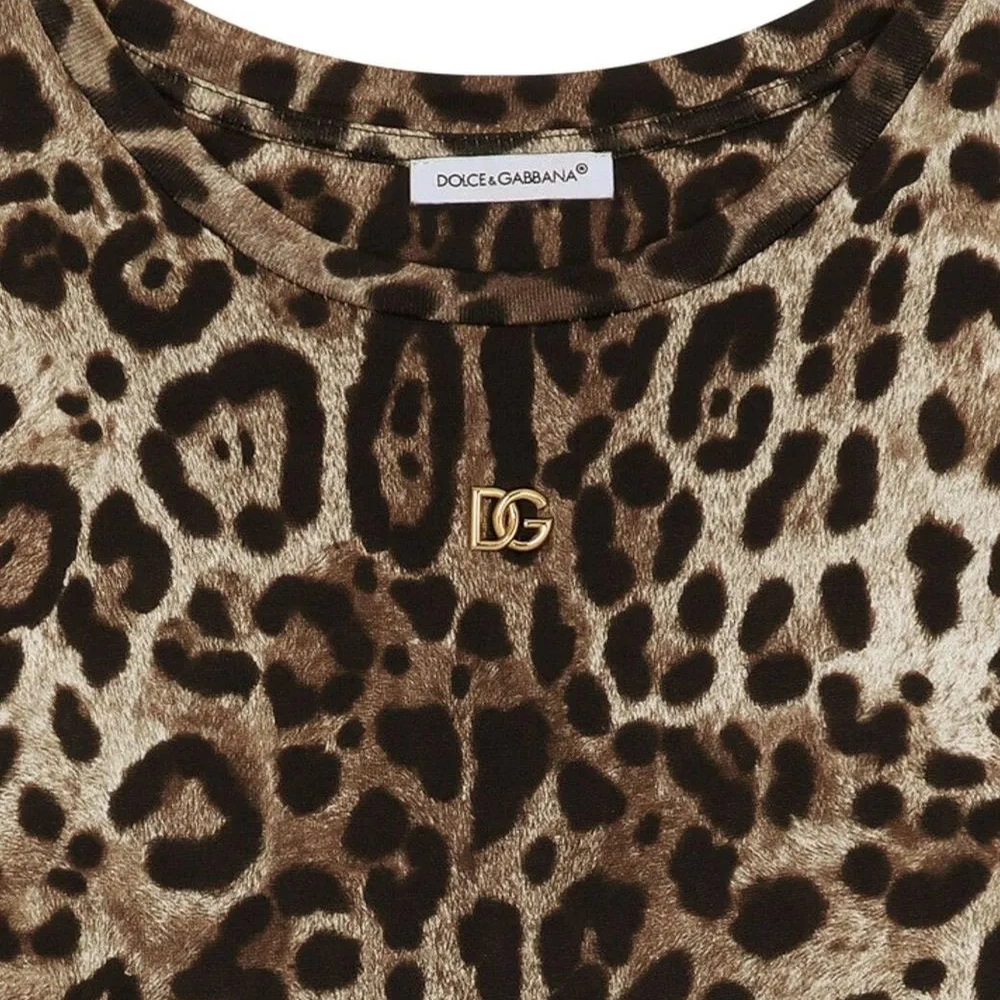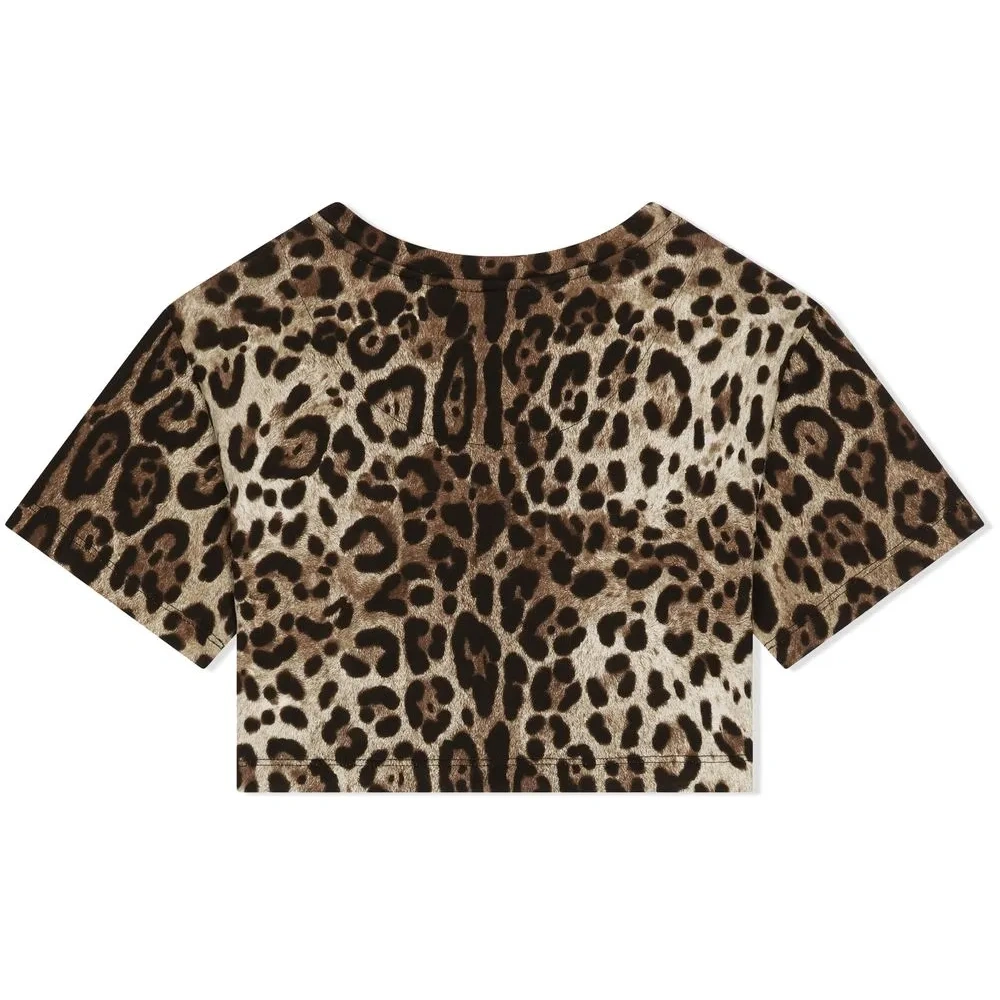 Укороченная футболка с леопардовым принтом от Dolce & Gabbana Kids.