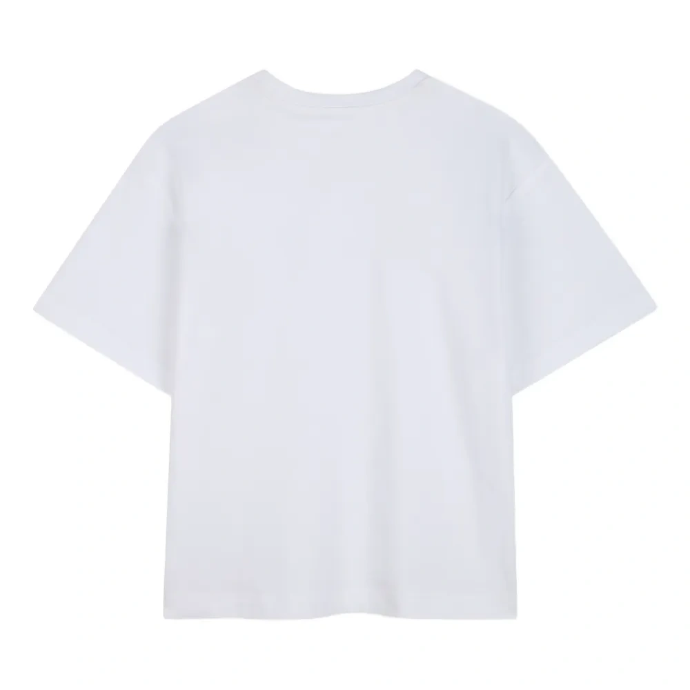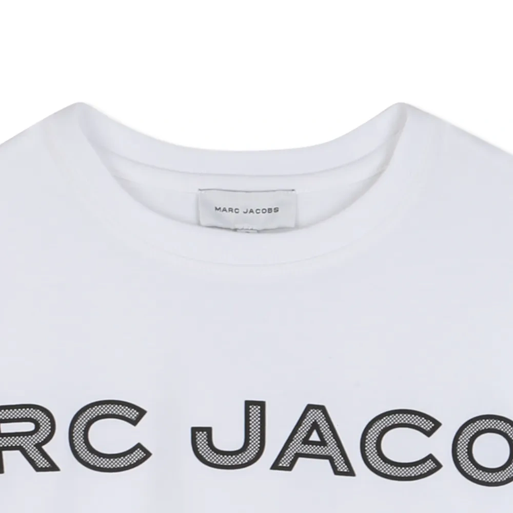 белая футболка с логотипом, круглый вырез, короткие рукава