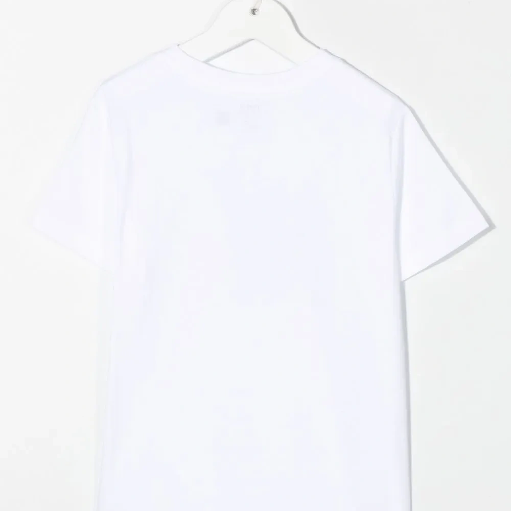 Ткань джерси, логотип спереди, круглый вырез, короткие рукава и прямой подол.