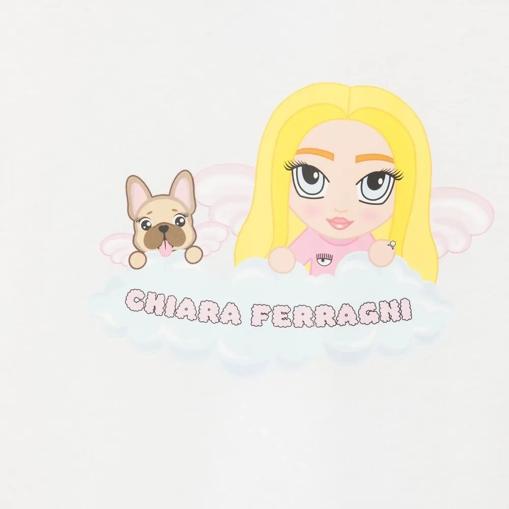Белый, хлопок, принт на груди, круглый вырез, рукава кап и прямой подол.