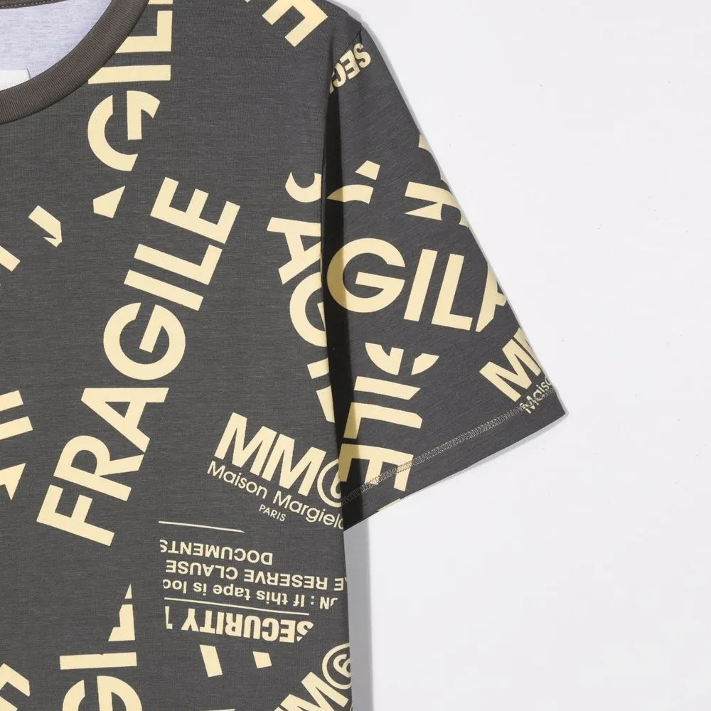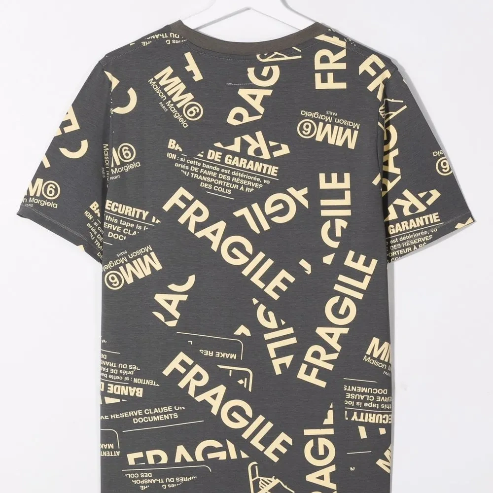 Принт с надписью, круглый вырез, короткие рукава и прямой подол.