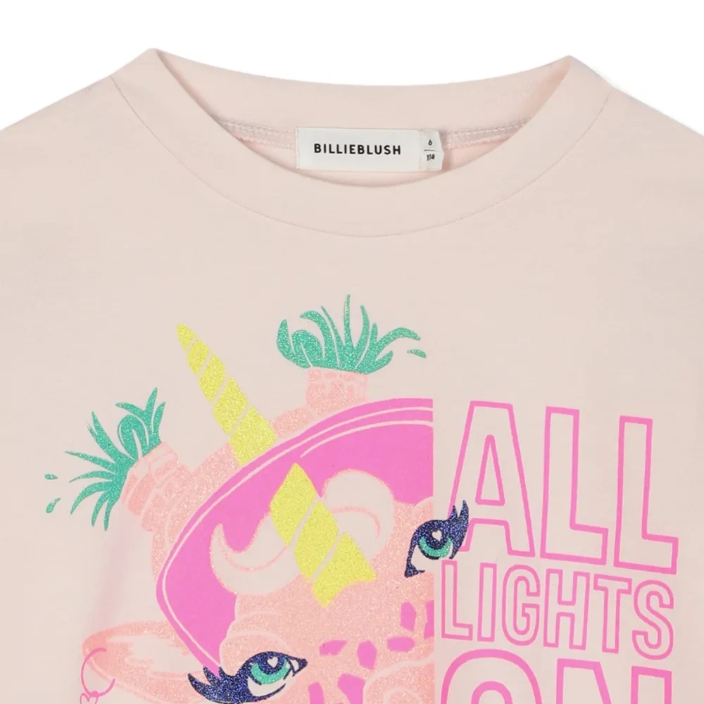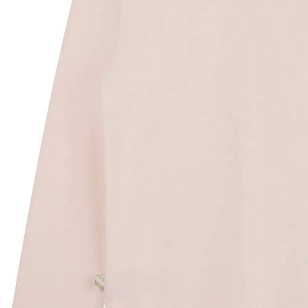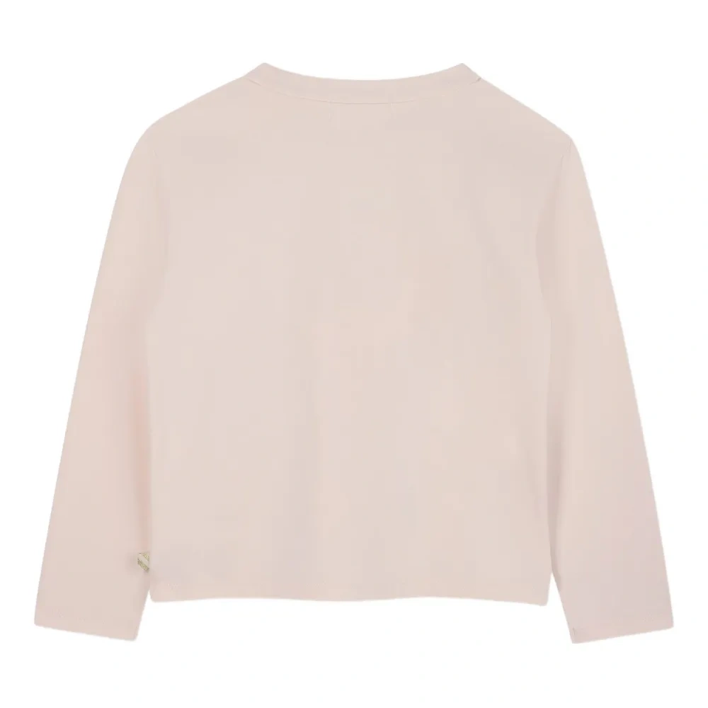 розовая футболка с графическим принтом, длинными рукавами и круглым вырезом