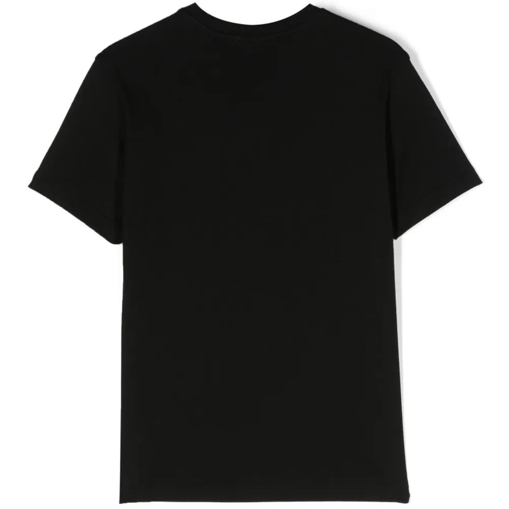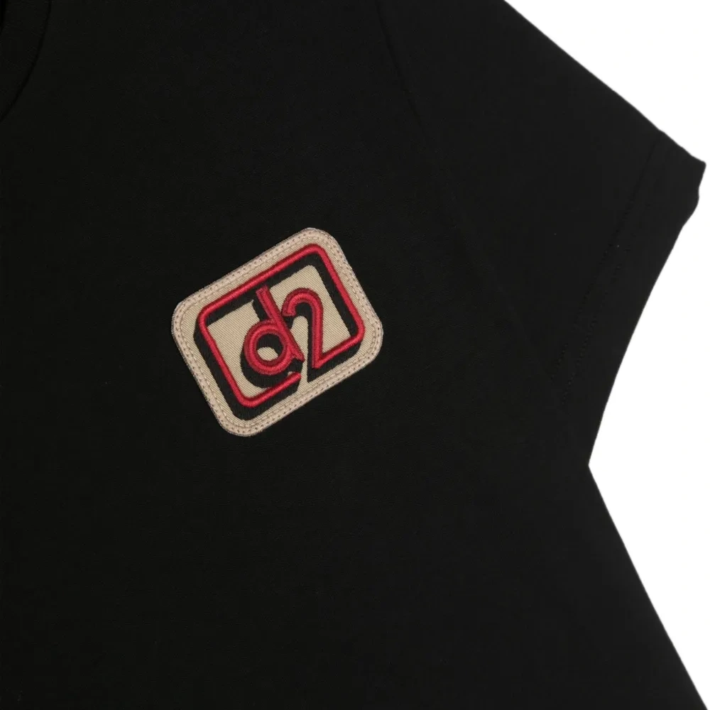 Черный, хлопок, нашивка с логотипом на груди, круглый вырез, короткие рукава и прямой подол.