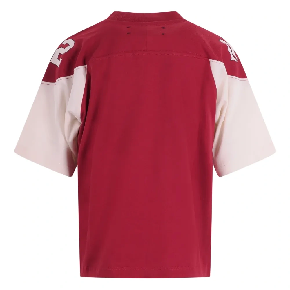 глубокий красный цвет, дизайн с блоками цвета, круглый вырез, короткие рукава