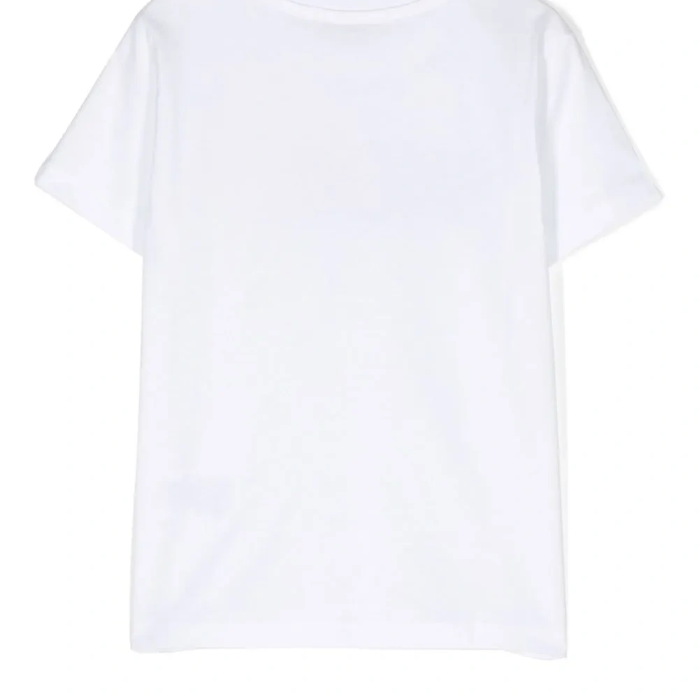 Логотип спереди, круглый вырез, короткие рукава и прямой подол.