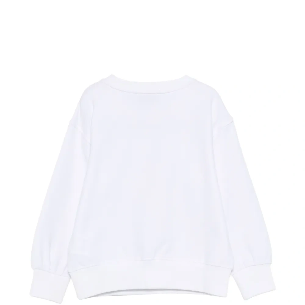 белый с графическим принтом, декоративными элементами, круглым вырезом и длинными рукавами