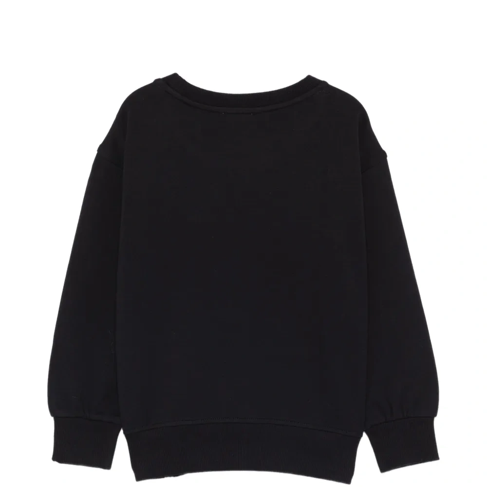 черный джемпер с графическим принтом, украшением, круглым вырезом, длинными рукавами и ребристой отделкой