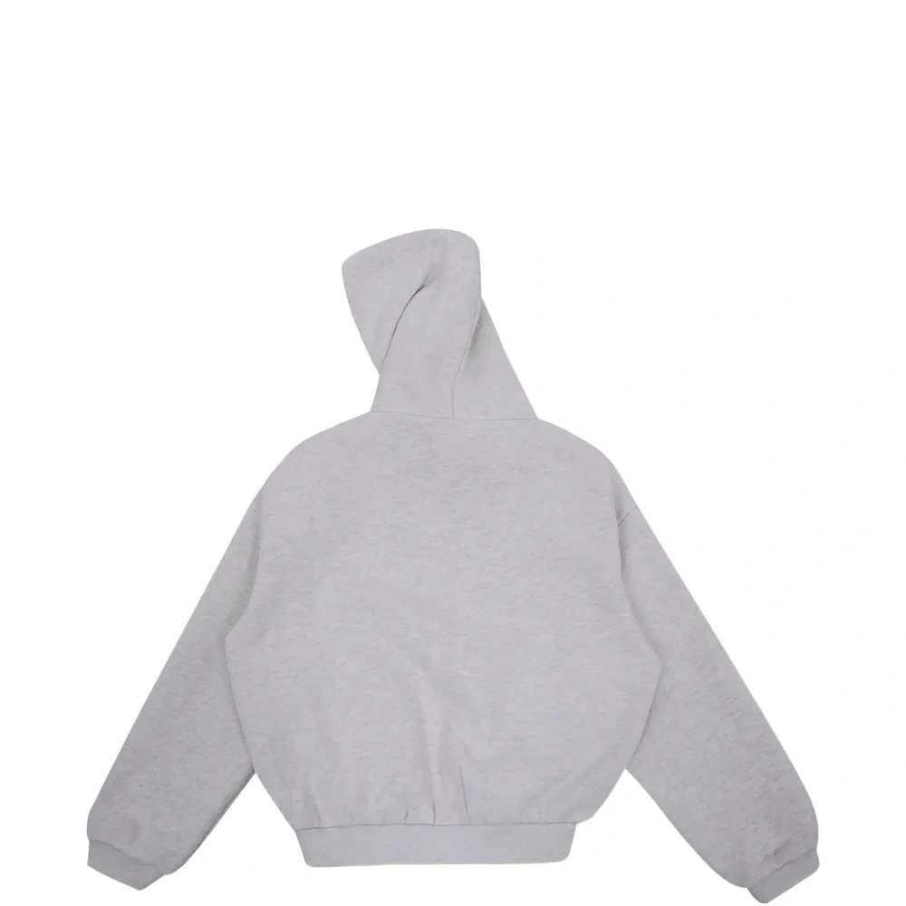 светло-серый меланжевый худи с эластичной кромкой, длинными рукавами, однотонным дизайном, свободный крой